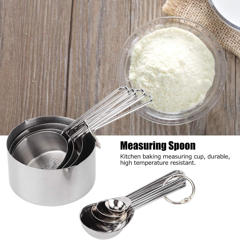 DAOUXIAOSPFeature:1. With detachable storage buckle, simple operation, easy storage and long service life.Specification:Condition: 100% Brand NewItem Type: Measuring SpooCupMaterial: 304 Stainless SteelColor: Black, Silver Weight: Approx. 338g / 11.9ozApplication: Home, Milk Tea Shop, Bar, Coffee Shop, etc.Product Size:1/4CUP 60ml: Approx. 56x78mm / 2.2x3in1/3CUP 80ml: Approx. 62x78mm / 2.4x3in1/2CUP 125ml: Approx. 72x78mm / 2.8x3in1CUP 250ml: Approx. 82x78mm / 3.2x3in1/4 Teaspoo1.25ml: Approx. 19x78mm / 0.7x3in1/2 Teaspoo2.5ml: Approx. 26x78mm / 1x3in1 Teaspoo5ml: Approx. 32x78mm / 1.2x3in1 Tablespoo15ml: Approx. 42x78mm / 1.6x3inPackage List:8 x Measuring Spoon2 x BuckleNote:1.Please allow 0?1 inch error due to manual measurement. Thanks for your understanding.2.Monitors are not calibrated same, item color displayed iphotos may be showing slightly different from the real object. Please take the real one as standard.