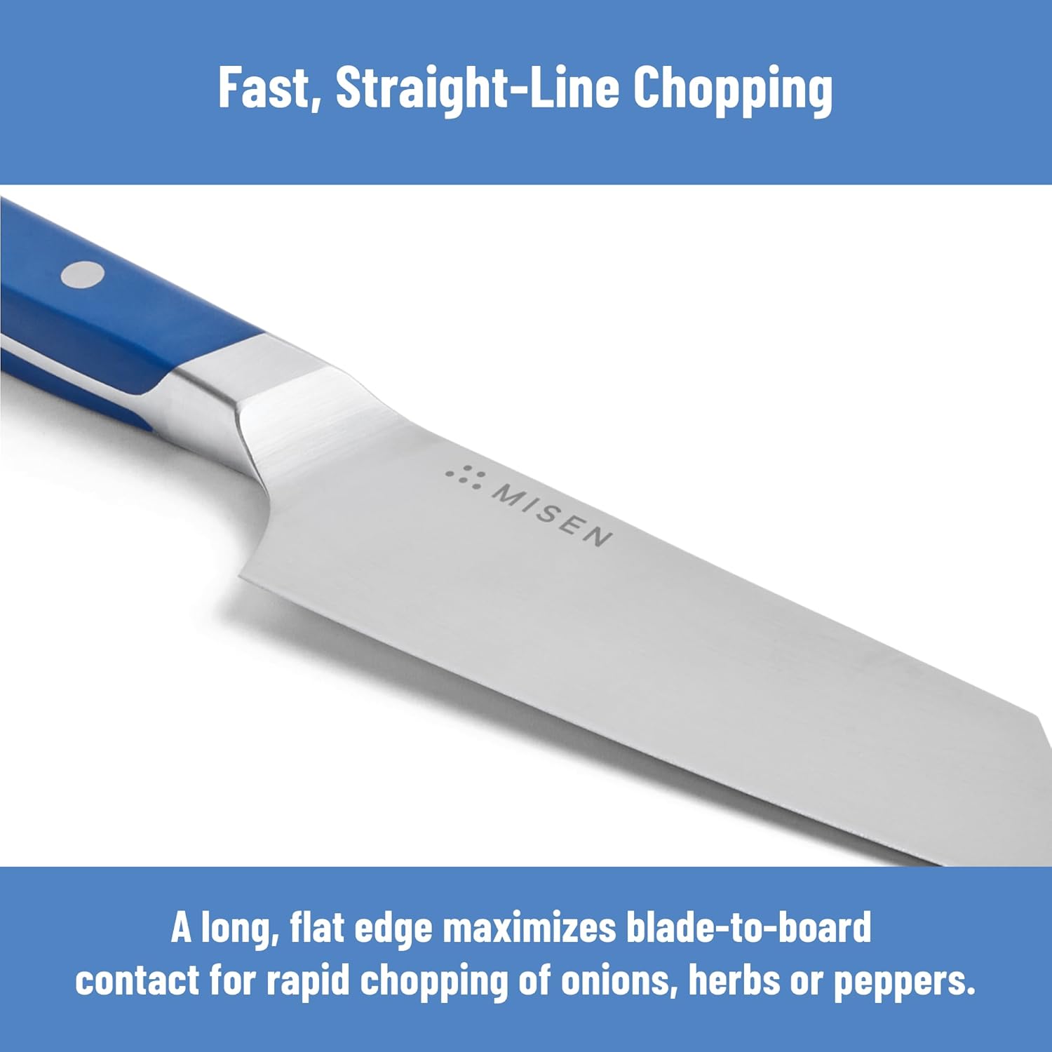 • Straight Belly Design for Fast Chopping – The flat slicing edge maximizes board contact, making vertical chopping of vegetables (onions, peppers, scallions) effortless.