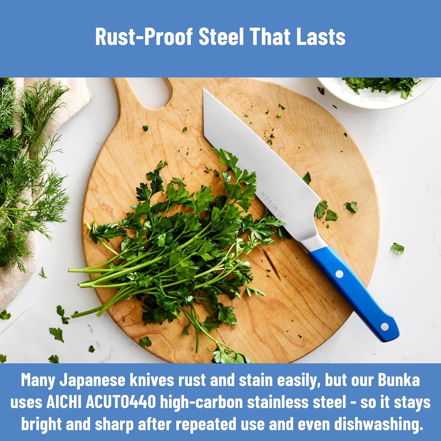 • Rust-Proof ACUTO440 Steel – Forged from Japanese high-carbon stainless steel with high chromium content, tested to resist rust even up to 50 dishwasher cycles.