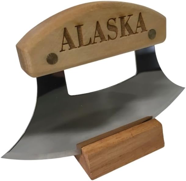 USA Made in Anchorage Alaska The Ulu Factory 6" Cutlery ulu knife comes with a matching Birch Stand
