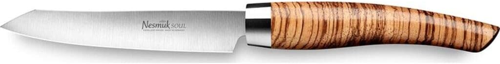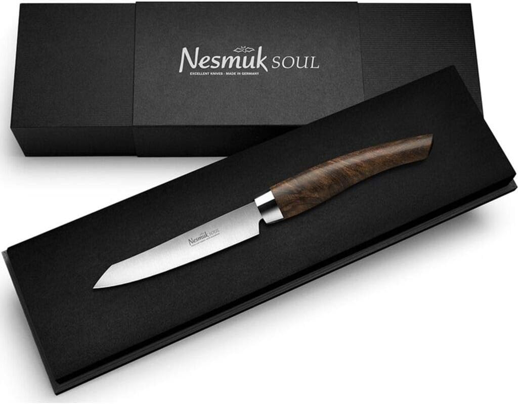 Perfect Handling For DetailsThe short, 90mm blade is perfect for preparation and cleaning. Nesmuk SOUL allows for a sharpness and edge retention not attainable with common stainless steel, thanks to the niobium content.Secure GripA secure grip is needed for detailled work. The ergonomic handle of the office knife fits perfectly in your hand and makes precise and easy cutting possible.PrecisionRecision tools for enthusiasts: The fine point of the office knife can place even the finest cuts straight to the point.Specifications:Blade: 90 mm, niobium steel, 60 HRC, flat grindingClamp: High-gloss polished stainless steelInclusive: High-quality matt black box, certificate of authenticityModel: S3C902013, S3EM902016, S3JB90, S3JI90, S3ME902015, S3WM90, S3ZE90