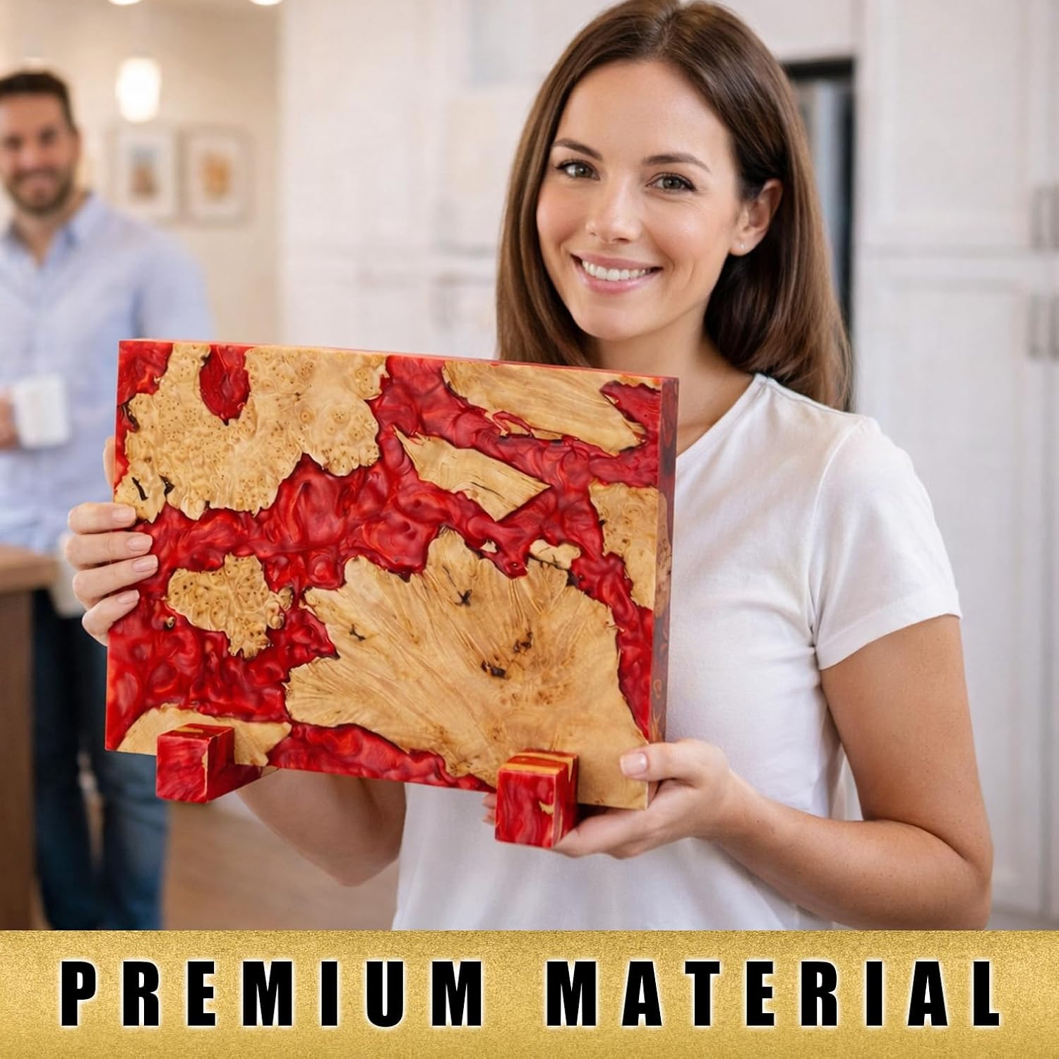 Transform your kitchen organization with this stunning FESTA FRESH magnetic knife block. Crafted from Burl Maple and vibrant resin, this double-sided knife holder combines functionality with artistic beauty. The powerful magnetic system securely holds up to 20 knives of various sizes, making your favorite cutting tools easily accessible while keeping them safely organized. The non-slip base ensures stability on your countertop, while the unique combination of natural wood grain and striking blue resin creates an eye-catching display piece. The thoughtful design allows for convenient knife storage on both sides, maximizing space efficiency in your kitchen. Perfect for both home cooks and professional chefs, this magnetic knife block offers a modern solution to traditional knife storage while adding a sophisticated decorative element to your kitchen decor. The strong magnetic hold keeps your knives in place, protecting their blades and ensuring they're ready for use whenever you need them.
