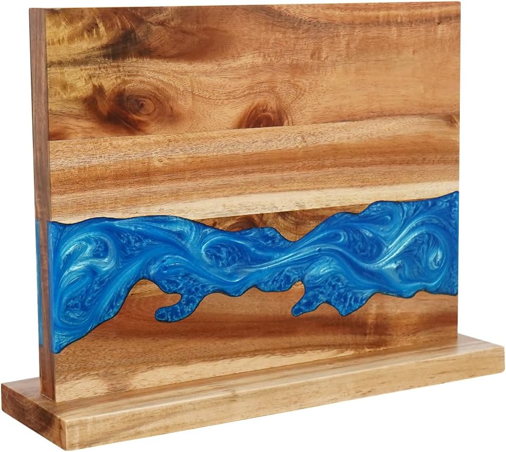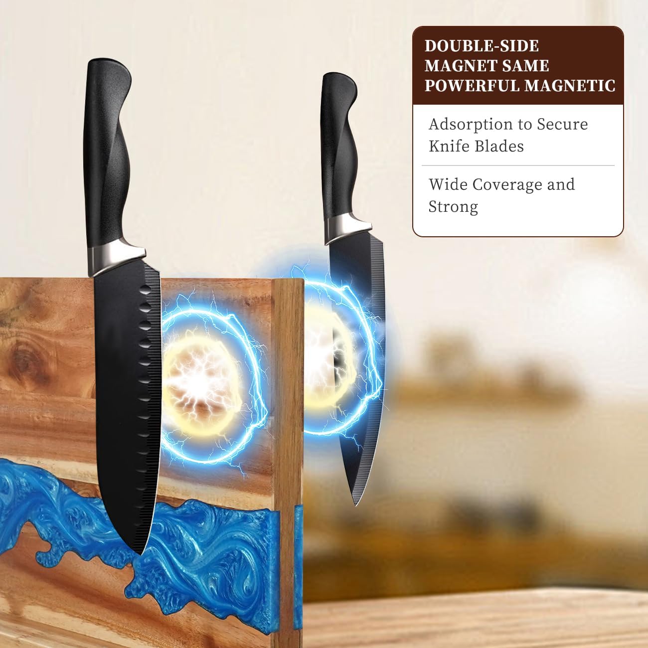 HALNYHYFD Magnetic Knife Block, Acacia Wood Knife Holder Stand with Strong Magnets, Double Side Knife Storage Rack for Kitchen (Brown)