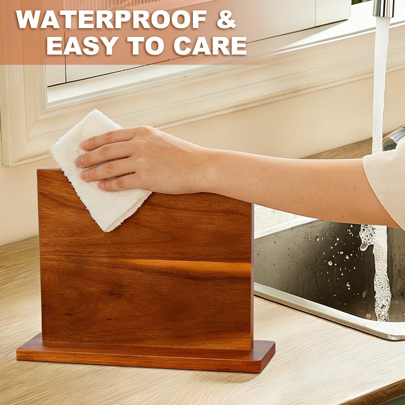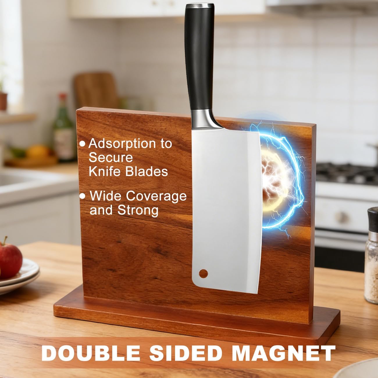 HALNYHYFD Magnetic Knife Block, Acacia Wood Knife Holder Stand with Strong Magnets, Double Side Knife Storage Rack for Kitchen (Brown)