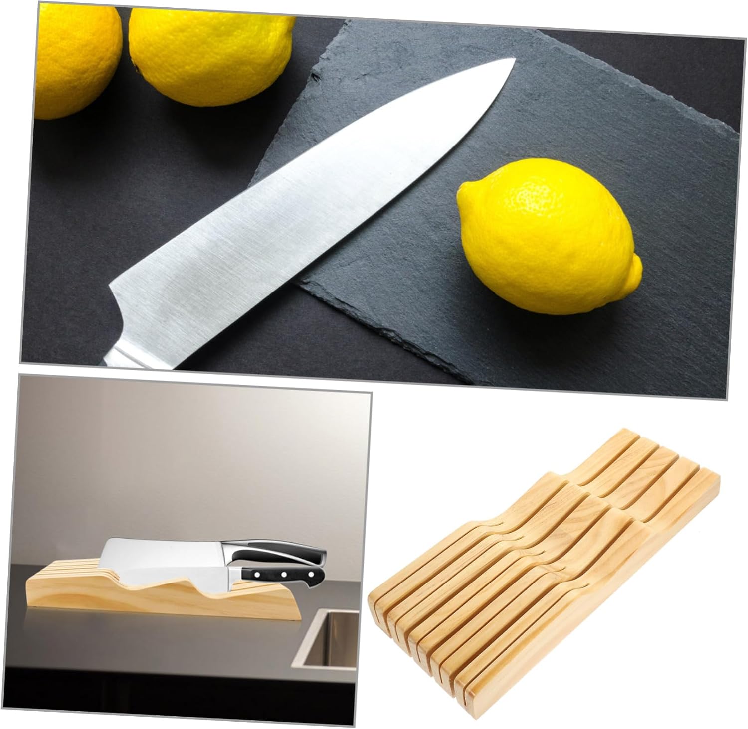 Package List 1 x cutter storage rack Features - Size: 40.00X13.00X4.50cm/15.72X5.11X1.77in Cutter Storage Rack -Color: Khaki. In-drawer Knives Block -Material: Wood. Useful Kitchen Supplies - A great to your friends, family, relatives, co-worker and more. Knives Organizer - Sturdy wood material protects knives from damage and dulling Knives Storage Rack. - Manufactured with wood material, sturdy, elegant, and . Cutter Holder - Helps keep your countertop clutter- , and organized Home Cutter Storage Rack. - Suitable dimension for standards drawers. Multifunctional Knives RackGoods InformationHome Knives Storage Rack practices are to use food-grade mineral oil for long-lasting durability.Knives Storage Block It’s easy to clean with warm soapy water to keep it neat and well-polished.Kitchen Knives Storage Rack The in drawer organizer is and sturdy to last a .Cutter Storage Rack This cutter block can save more spaces, more room for cooking and kitchen appliances