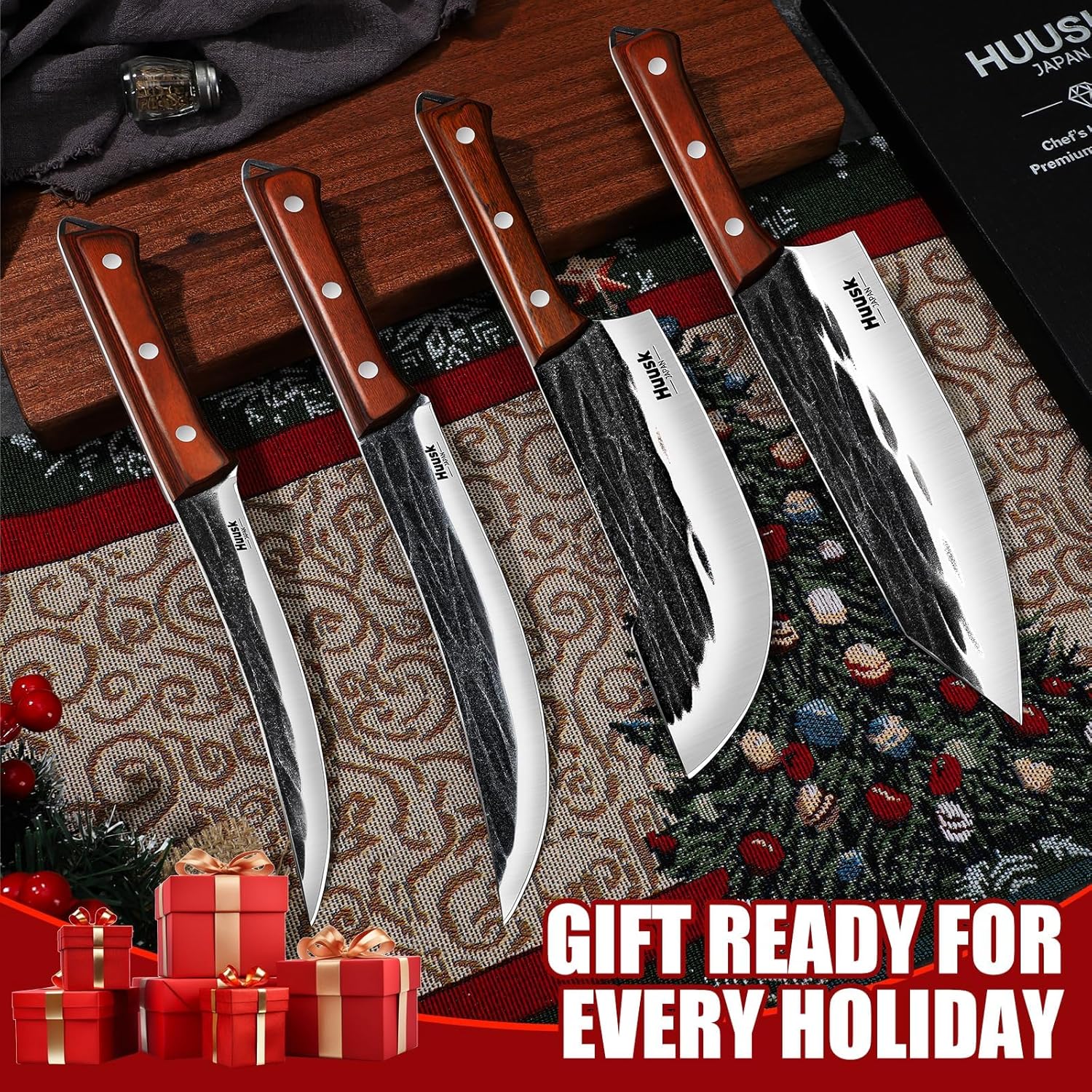 A Huusk Damascus Kiritsuke Knife and a Butcher Knife Set, Limited Quantity!