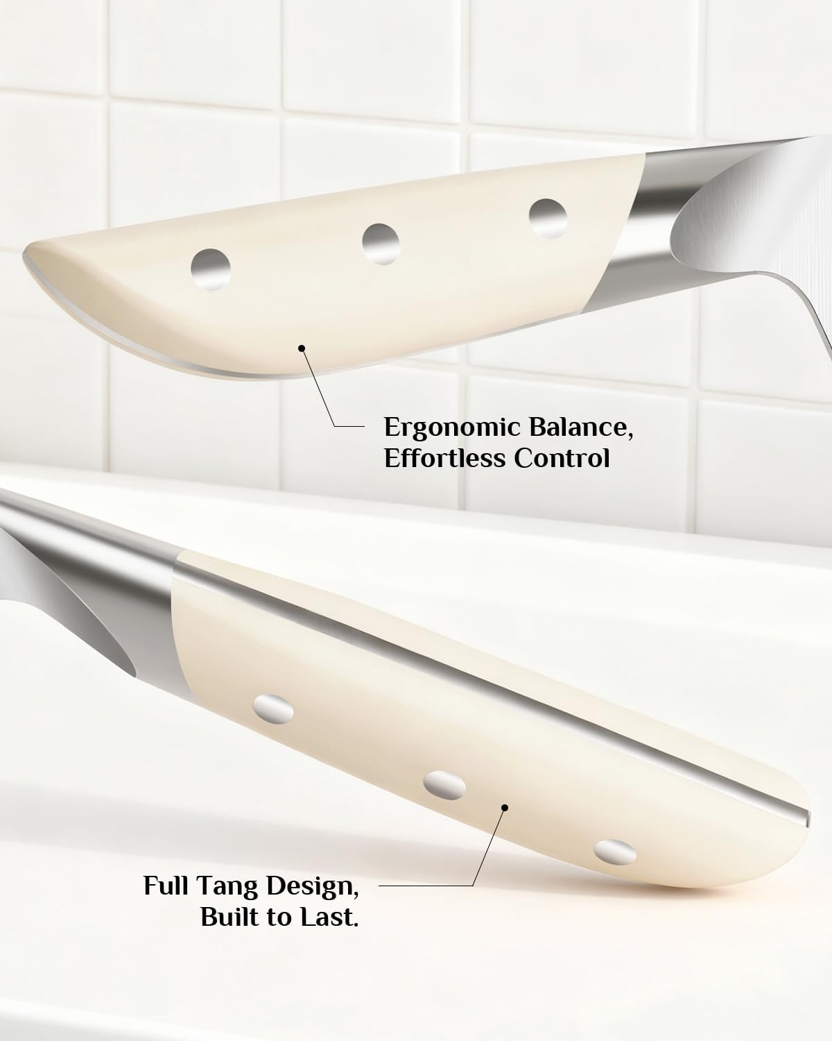 | Handle Material | ABS Polymer (Black, Full Tang Construction), Ergonomic handle reduces wrist fatigue by about 30% on average. |
