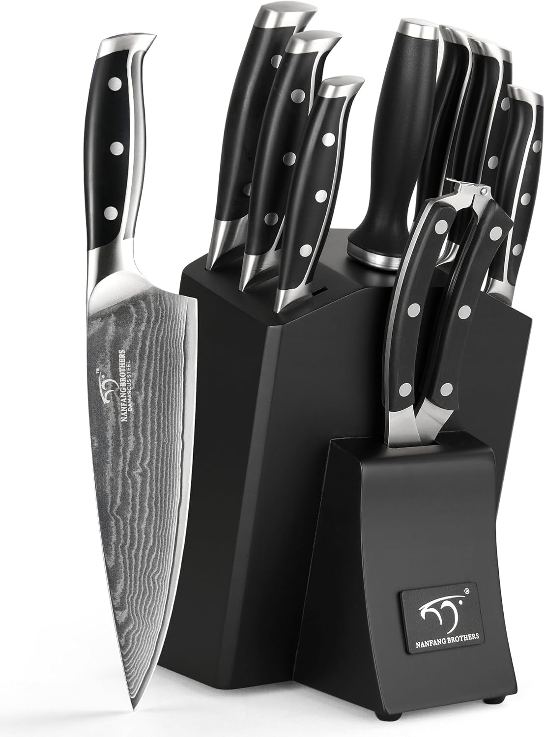 | Included Components | 8”Chef Knife, 8”Slicing Knife, 8”Bread Knife, 7” Santoku Knife, 5.5”Utility Knife, 3.5”Paring Knife, Kitchen Shears, Knife Sharpener,Natural Wood Block. |