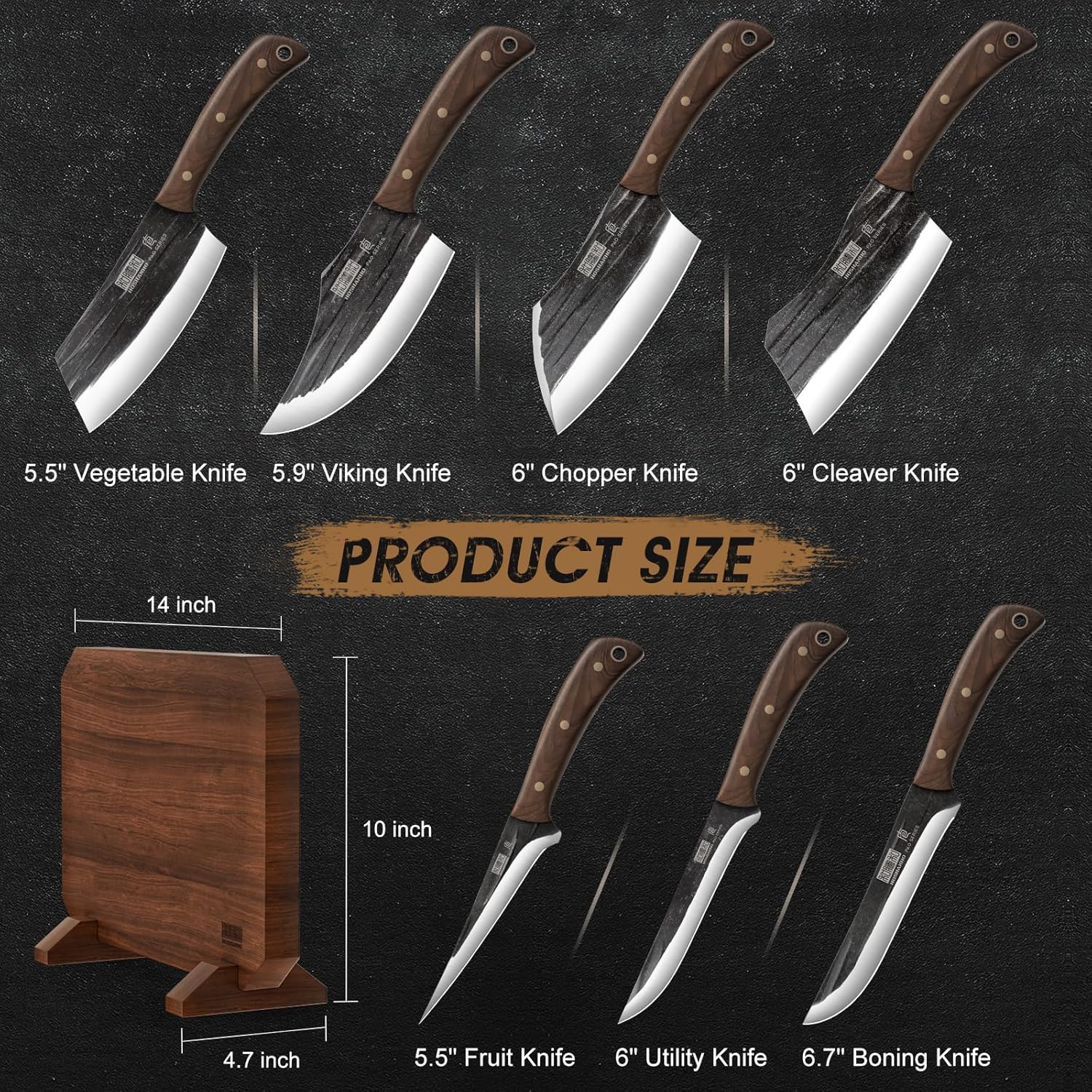 HOSHANHO 8 Pieces Butcher Kitchen Knife Set, Hand Forged High Carbon Stainless Steel Magnetic Knife Block Set & Fillet Knife 7 Inch, Super Sharp Boning Knife in High Carbon Stainless Steel