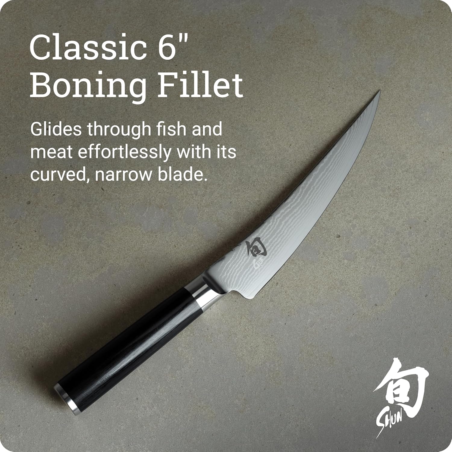 • SPECIALIZED BONING & FILLET KNIFE: The Shun Classic 6-inch Boning Knife is expertly designed to glide through meat and fish with precision and ease, making it a must-have for any kitchen.