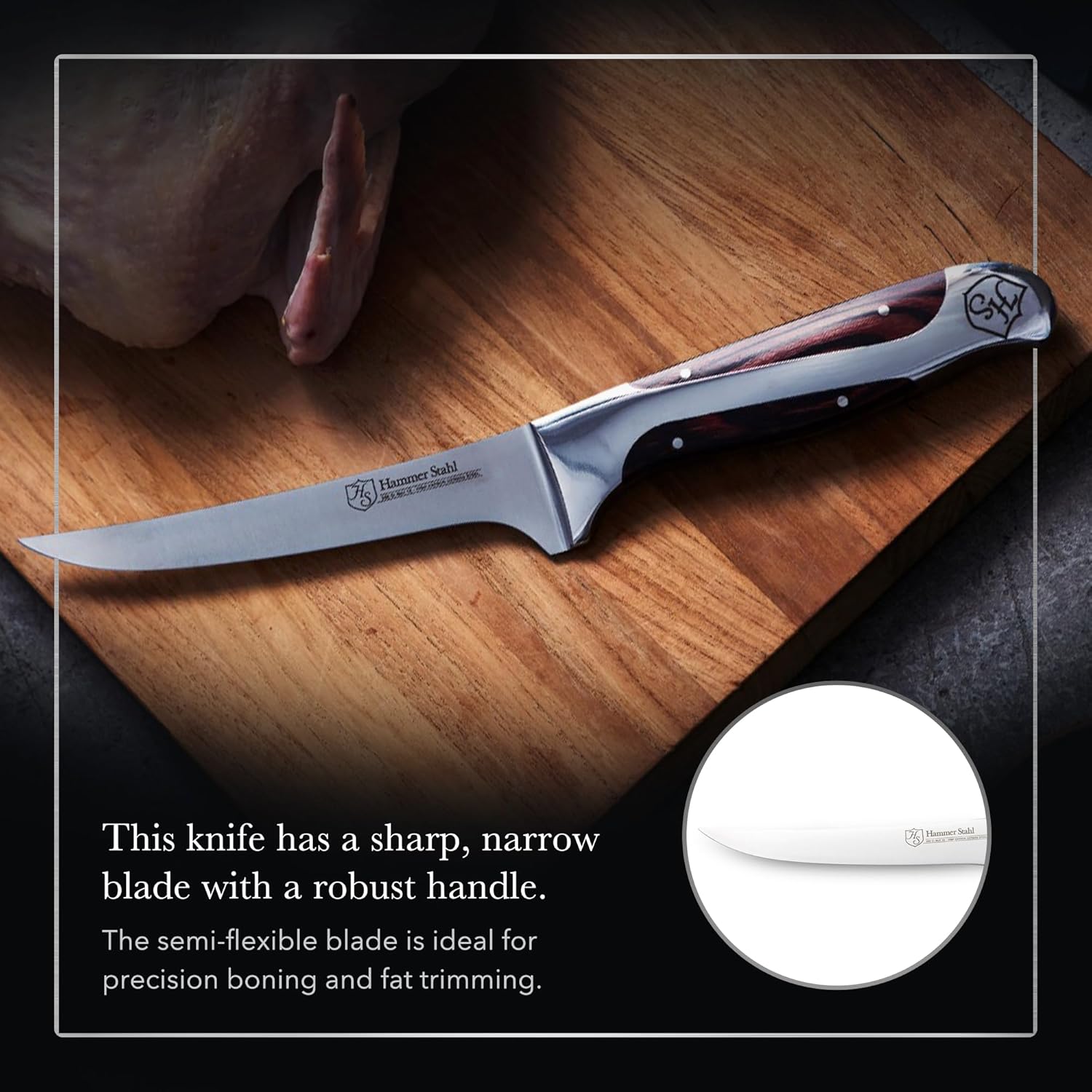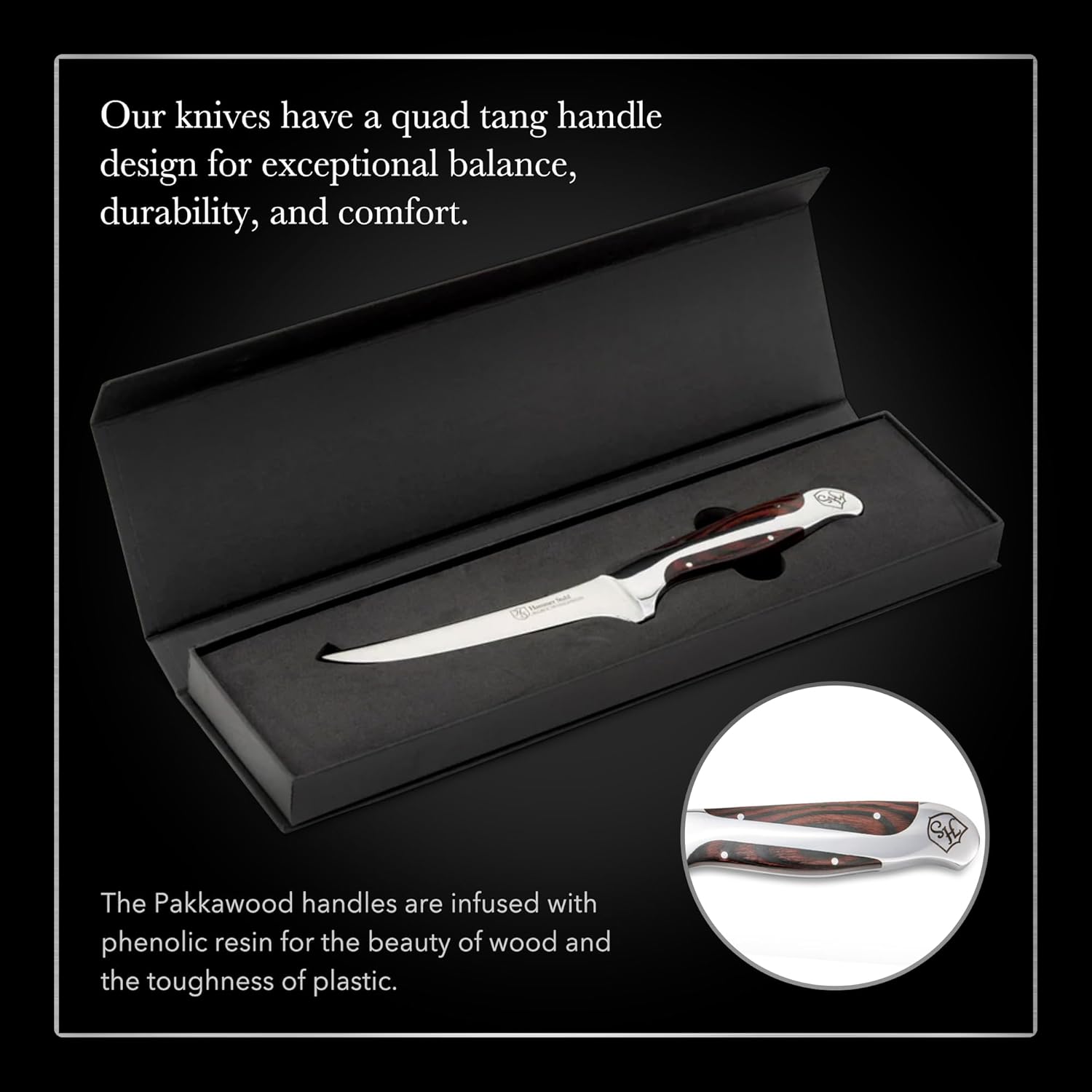Hammer Stahl 6 Inch Boning Knife | German Forged High Carbon Steel Fillet Knife | Kitchen Knife For Boning, Filleting, & Trimming | Butcher Knife with Ergonomic Quad-Tang Pakkawood Handle & Gift Box