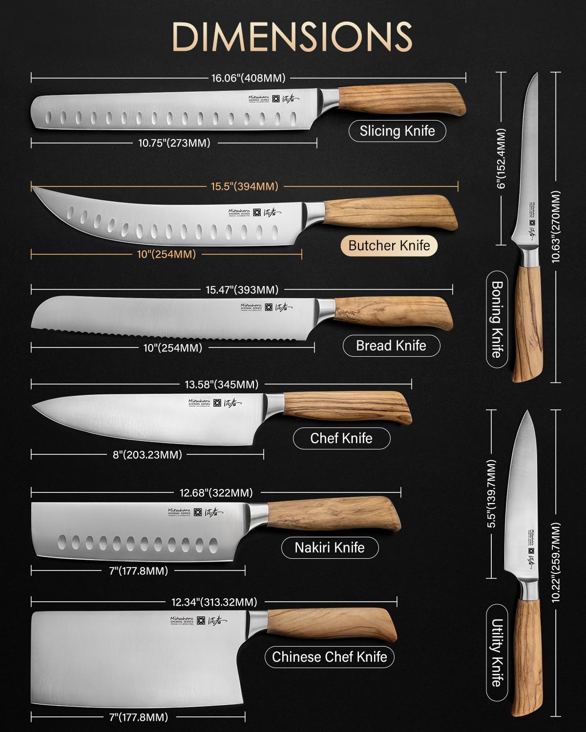 Product Details: Blade Material:1.4116 German Steel Handle: Ergonomic, Olive Wood Rockwell Hardness: 56–58 Edge Angle: 13–15° V Grind