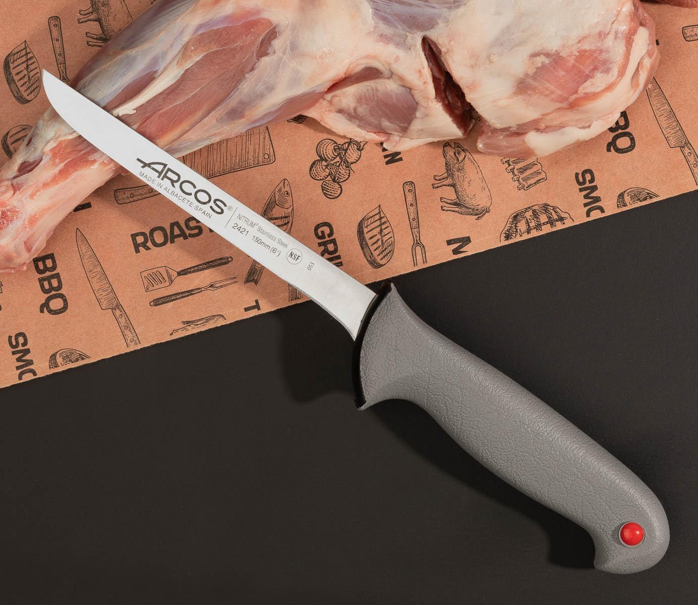 Introducing the Arcos Series Colour Proof Boning Knife, the perfect tool for professional chefs and home cooks alike. This knife is part of the Colour Proof series, which has been specifically designed for prolonged and heavy professional use. At the heart of this knife is the exclusive, high usable and lasting NITRUM stainless steel blade. This material ensures that the blade is strong, durable, and able to withstand the rigors of daily use. The blade measures 6 inches, making it the perfect size for filleting and boning meats and fish. The handle of this knife is truly revolutionary. It features a unique ergonomic design that uses a core of polypropylene (PP) in the heart of the handle and a soft rubber coating on the outside. This special mixture of materials gives the knife greater comfort and adaptability, making it easy to grip and handle. The handle is also non-hygroscopic, meaning it does not absorb liquids, and is resistant to high temperatures and slippage. One of the standout features of this knife is the colour identification system. Each knife can be identified for cutting a specific food using a system of coloured polypropylene indicators located on the handle. This system promotes better hygiene and health for the consumer, as it ensures that each knife is used only for its designated purpose. The system is based on European standards and is a great way to keep your kitchen organized and efficient. Overall, the Arcos Series Colour Proof Boning Knife is a top-of-the-line tool that delivers exceptional performance and durability. Whether you're a professional chef or a home cook, this knife is sure to become an essential part of your kitchen arsenal. So why wait? Order your Arcos Series Colour Proof Boning Knife today and experience the difference for yourself!