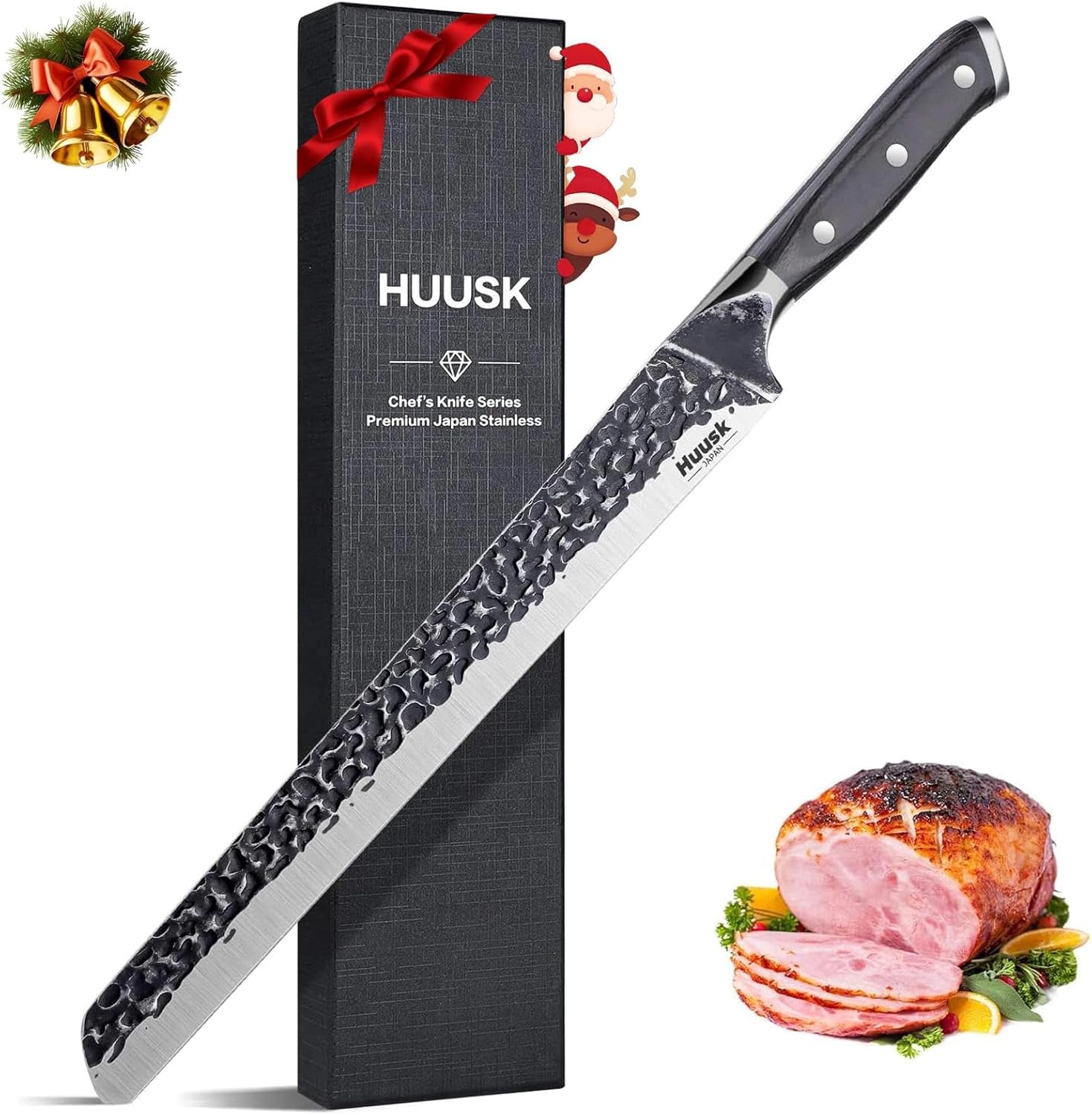 Huusk Japan 11.5 Inch Hand Forged Slicing Knife for Meats, Paring Knife Set 2PCS - Razor Sharp with Ergonomic