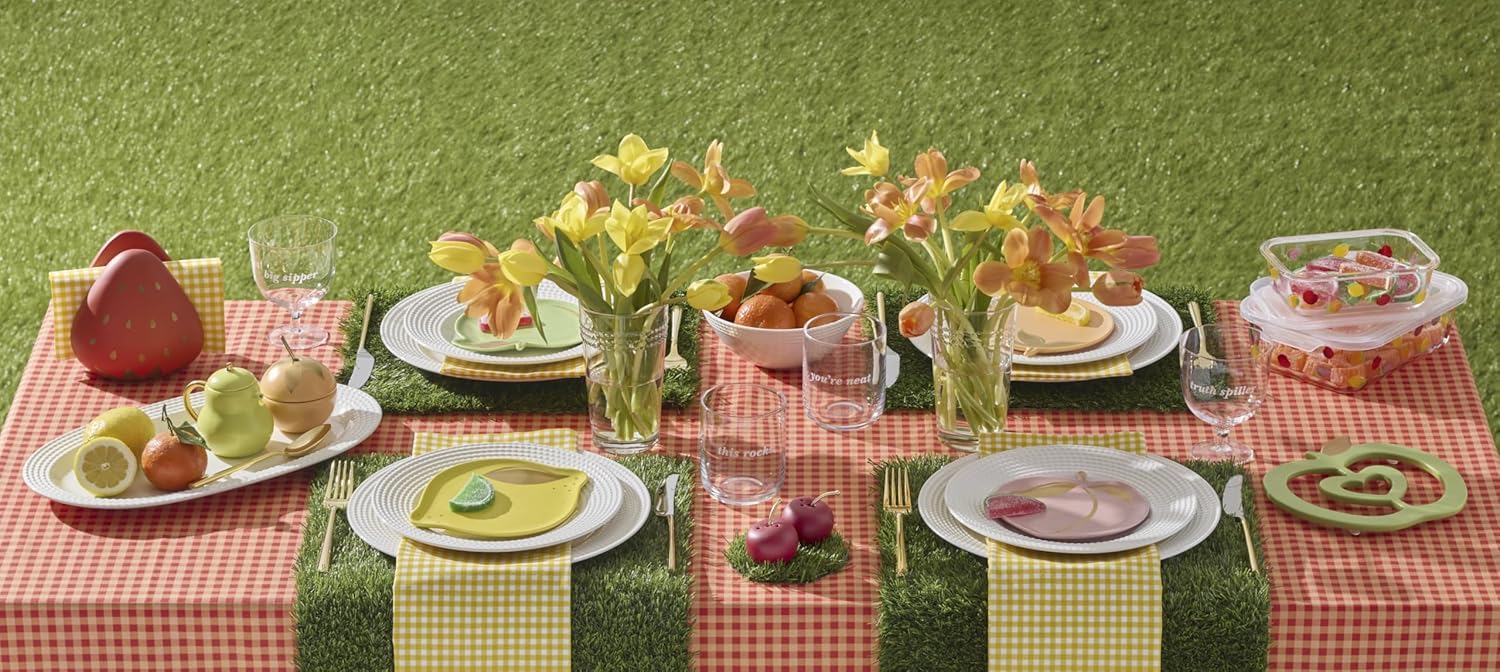 The Tutti Fruity collection from Kate Spade New York sweetens your everyday kitchen pieces. Too hot to handle? Not for this playful apple-shaped trivet.
