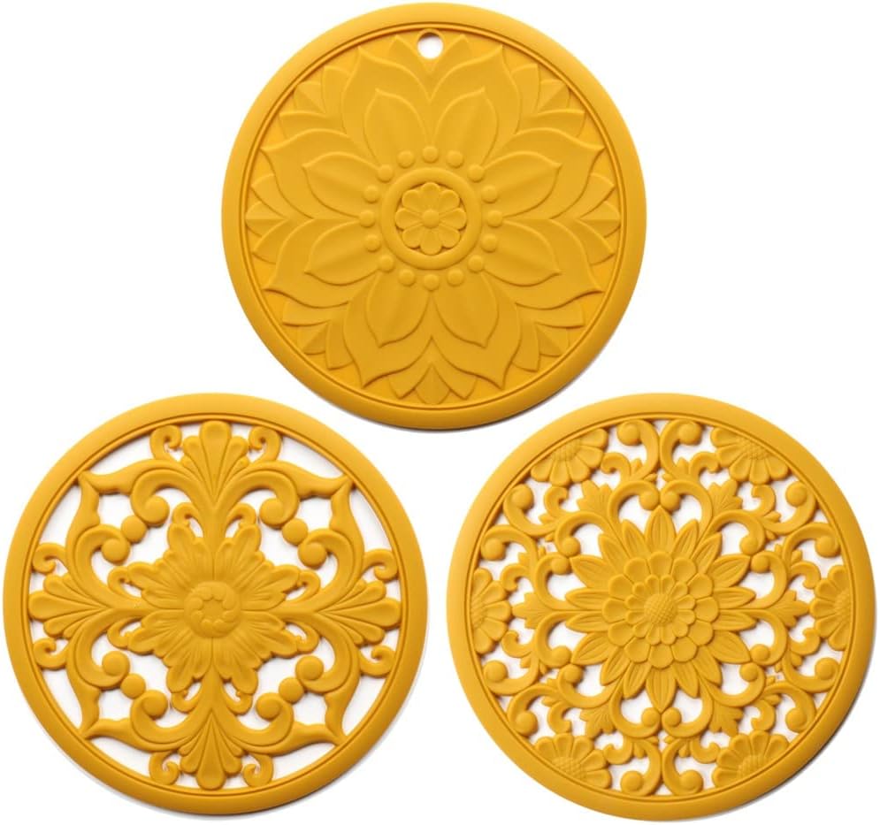 1. Silicone material, can withstand a temperature of 100°C normally, and can withstand a high temperature of 230°C instantly, heat insulation and anti-scalding.2. After being stained with oil, it can be cleaned by rinsing it with water, which is convenient and worry-free.3. Effectively prevent random shaking and falling off.4. The soft silica gel can be curled at will and is not easily deformed, which is convenient for storage and does not occupy space.5. It can be hung and stored, saving space and draining water quickly without .Specifications:Name: PlacematMaterial: Silica gelSize: diameter 20cmPackage includes: Placemat *3 pcs(other accessories demo in the picture is not included.)Note:*Due to the difference between different monitors, the pictures may not reflect the actual color of the item.*Compare the detail sizes with yours, please allow 1-3cm error, due to manual measurement. Thanks for your understandings.Tons of styles for formal dress shirt, suit & tuxedo are best match for wedding, formal business meeting, prom, interview, casual party, banquet, ceremony and all precious moments.