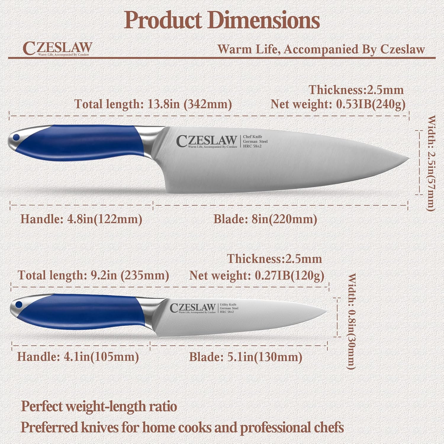 | Color | 8"Chef Knife & 5" Utility Knife Kitchen |