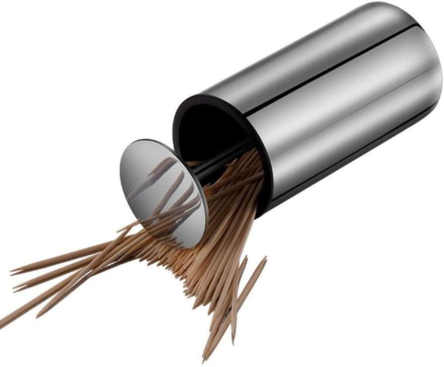 This metal toothpick holder is made of stainless steel,rustic, and will last years.With retractable function,it is very easy and convenient to use and keep the toothpick stay in order inside and out of review.With and stylish appearance,it works not only a practical household necessity but an attractive commercial device as well. & simple appearance make it a good decor for dining room or restaurant.Buy it in confidence for particular function and have fun.Features:Material:Stainless SteelWeight: 150gDimension:5*10cmPacking List:1 x Toothpick HolderHome creative automatically pops up toothpick box home living room dining room toothpick storage box.