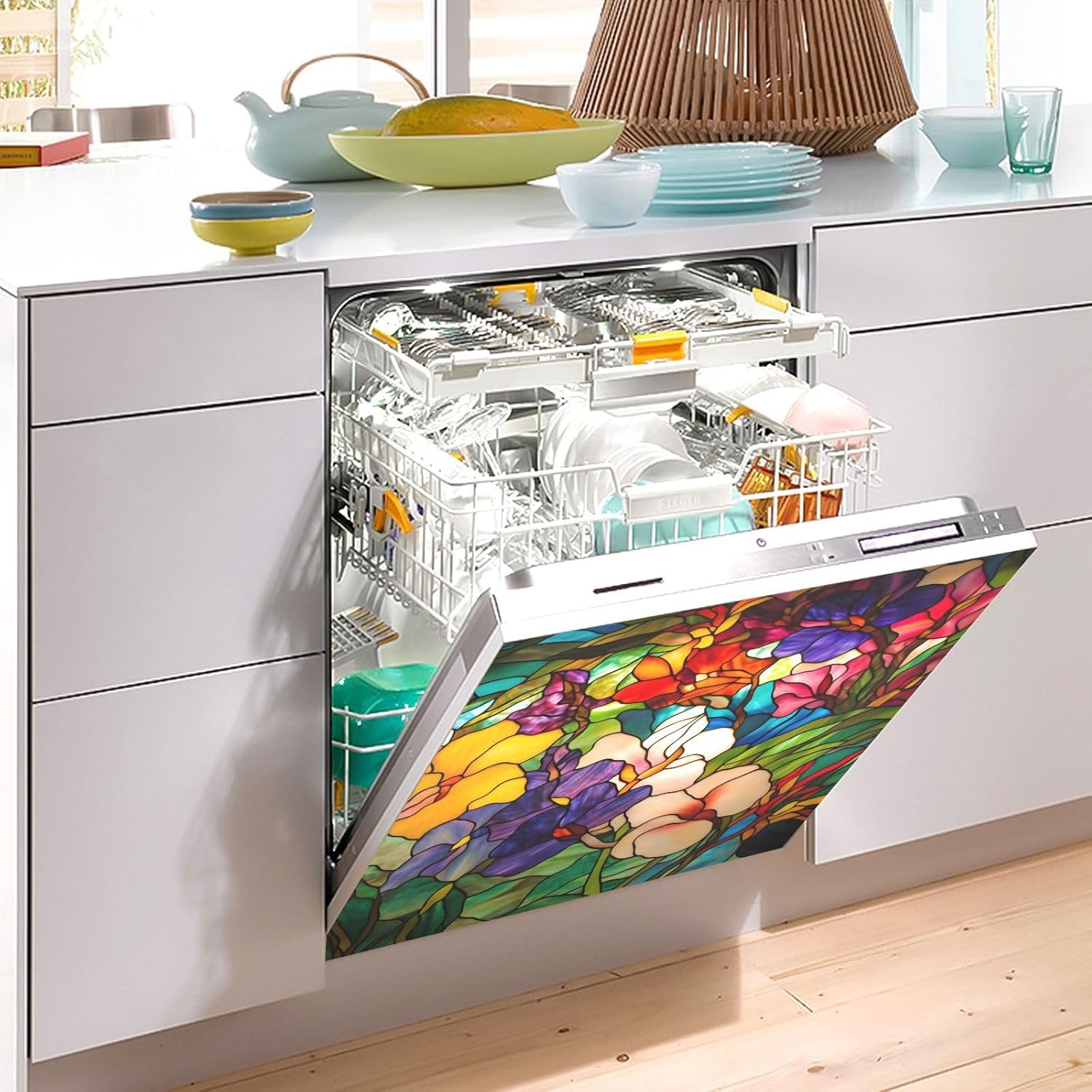 The kitchen decorative fridge panel decal cover easily refresh your dishwasher, And it can easily cover the flaws, Make the kitchen more interesting!Features:No trace after tearingQuick and easy to installSuitable for kitchen, Heat resistant, Waterproof, Scratch, and Tear Resistant.Size: 23 W x 26 H inches (58.6W x 66.2 H cm)Great Gift: This dishwasher cover is a nice gift for your friend or family on holiday, birthday, Christmas, Thanksgiving Day, Halloween, Housewarming etc.Package Included: 1 x magnetic dishwasher coverAttention: Just ensure that your dishwasher is magnetic before ordering the dishwasher cover magnetIN