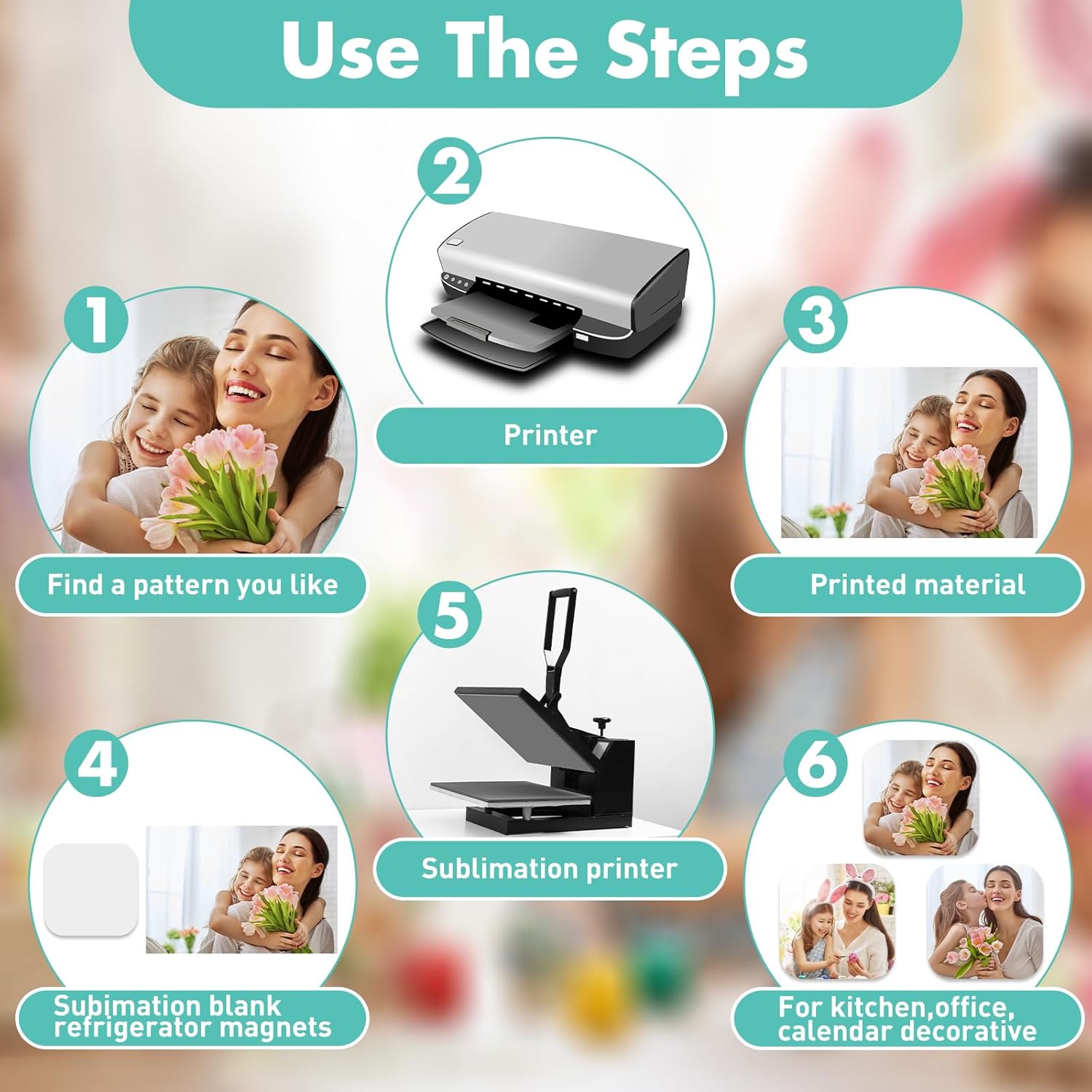 Size: as the pictures shown Material: heat transfer material and soft magnet Sublimation Guide: single sided coating, printable on single sides Sublimation: Time: 60-70 seconds Temperature: 356 degrees Fahrenheit-374 degrees Fahrenheit (180 degrees Celsius-190 degrees Celsius) Ideal gift choice: this refrigerator sticker is small and suitable for heat transfer printing, this is a suitable gift for family, friend, classmates, colleagues and teachers, this is also a good gift choice during the graduation season and Mother's Day, through your DIY ideas, this will become a meaningful gift Application: the other side of soft magnetic contains adhesive, which can be applied to paste the heat sublimation wood sheet. It is suitable for the finished refrigerator magnet you make. It can be applied to decorate any metal or magnetic surface, such as magnetic iron plate, dormitory, map, refrigerator, air conditioner, locker, washing machine, magnetic dry cleaning board, etc. Notes: There is a protective film on the surface of the Sublimation Blank, please tear it off when using. Please allow slight size errors due to manual measurement. Warning: this product contains magnets. Keep away from children and pets.