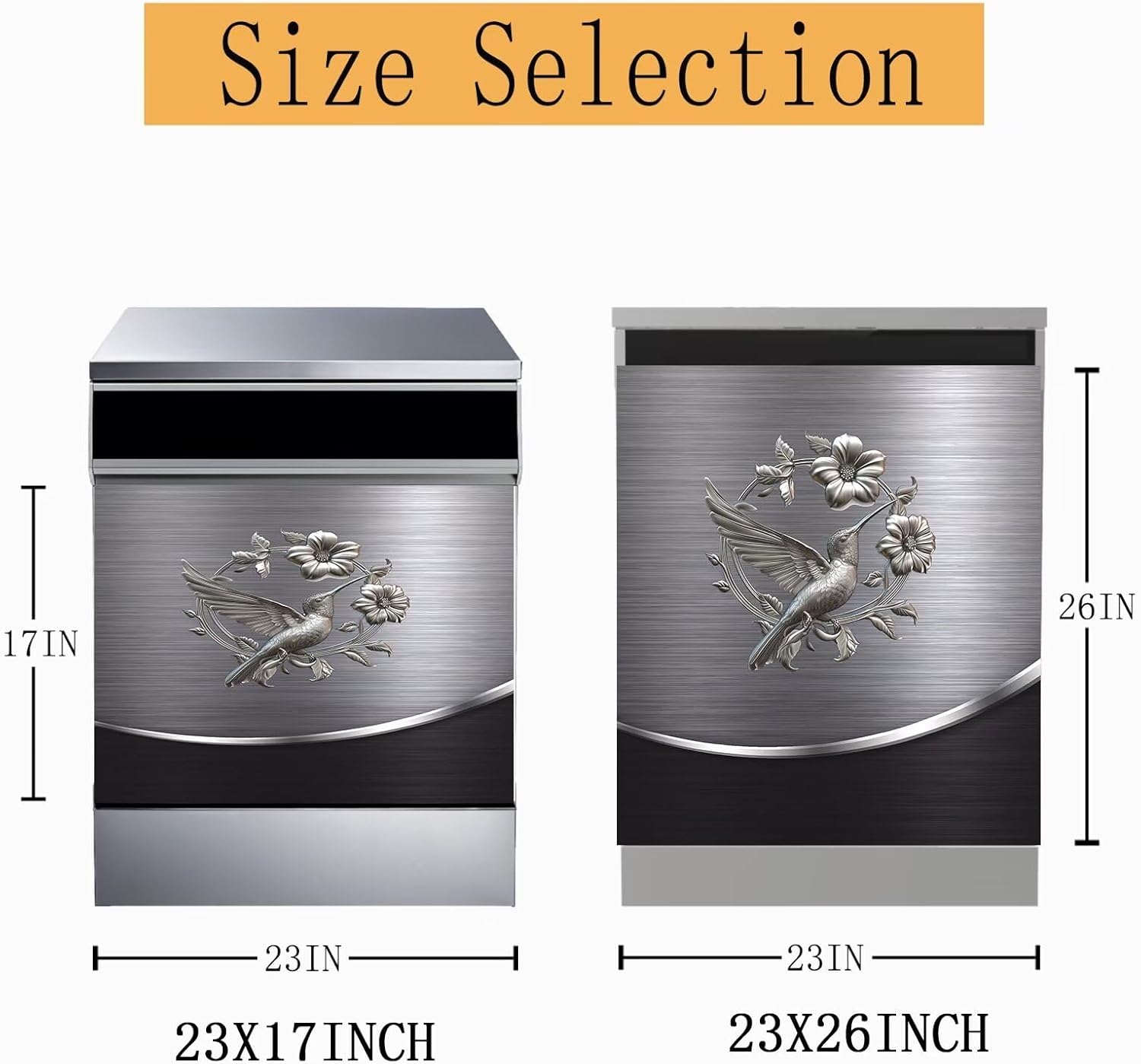 Want a simple decoration that can change with the seasons and festivals?Beautiful dishwasher magnet metal silver texture decals are suitable for any magnetic device panel.Sticker features:*Can be used for a long time without deformation, no trace after tearing (magnetic).*This dishwasher magnet cover decal is made of vinyl and magnet, using environmentally friendly materials.*It can cover old electrical appliances quickly and economically.*It can be used in household appliances such as dishwashers, refrigerators, washing machines, clothes dryers, etc. Before using the dishwasher sticker, please keep the countertop clean and free of water stains.Dimensions: 23 wide x 17 high inches; 23 wide x 26 high inches.If the size you want is not available, you can always trim to the right size with scissors.Reminder: (It is recommended to measure the size of home appliances that need to be equipped before buying).