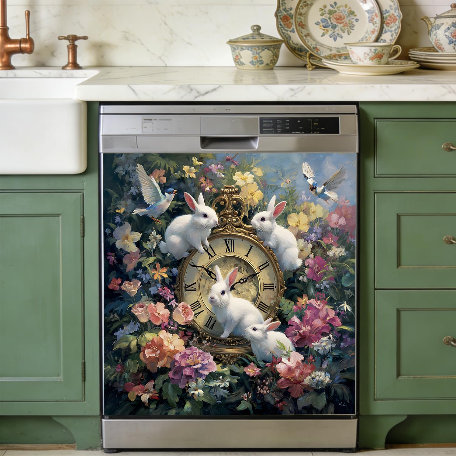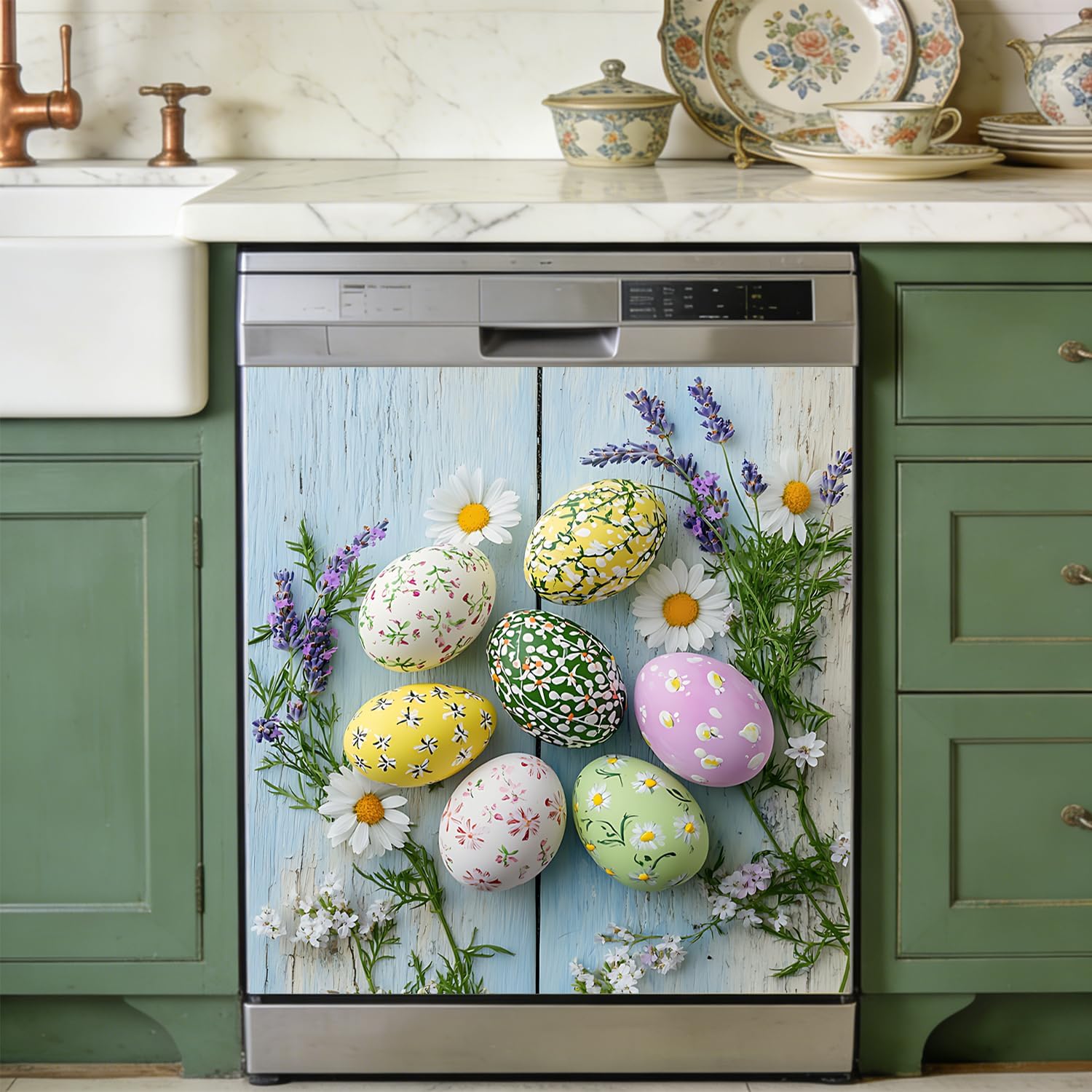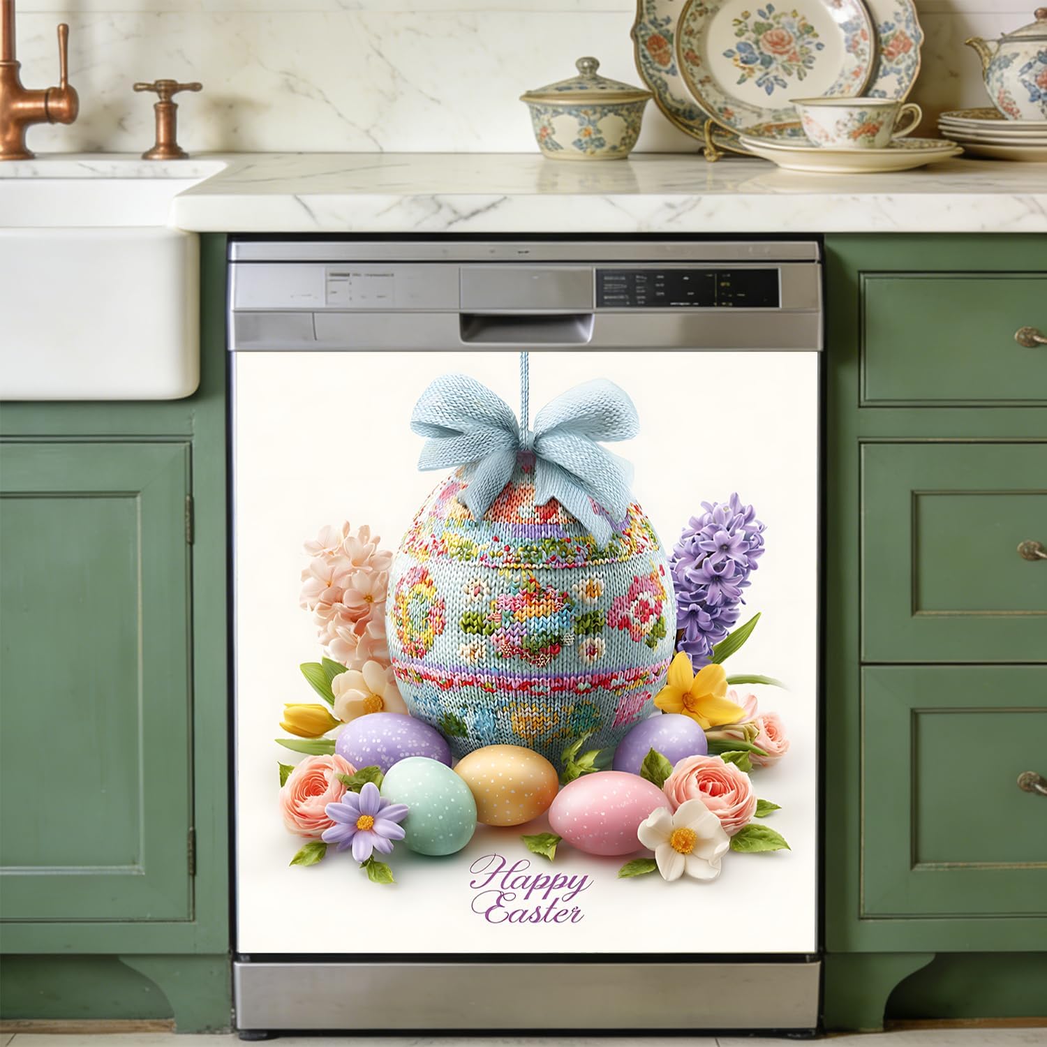 Bring festive spring charm to your kitchen with this Easter Dishwasher Magnet Cover, featuring a colorful and cute bunny with Easter eggs set against a vibrant background. Designed to refresh your kitchen décor for the season, this decorative magnetic cover adds warmth, color, and holiday spirit to your dishwasher in seconds.This dishwasher magnetic sticker is made of durable, reusable vinyl material that easily adheres to most standard metal dishwasher doors and can be easily removed without leaving any residue. It's a simple way to easily add Easter and spring flair to your kitchen without any permanent modifications.This magnetic dishwasher cover measures 25.6 x 23 inches and is designed to provide complete front coverage while maintaining a smooth, flat appearance. Whether you're decorating for an Easter gathering or simply enjoy seasonal kitchen decor, this reusable dishwasher cover offers an easy and convenient decorating solution.It's perfect for spring kitchens, Easter decorations, holiday decor, or seasonal home makeovers, and makes a thoughtful gift for friends and family who love festive home decorations.