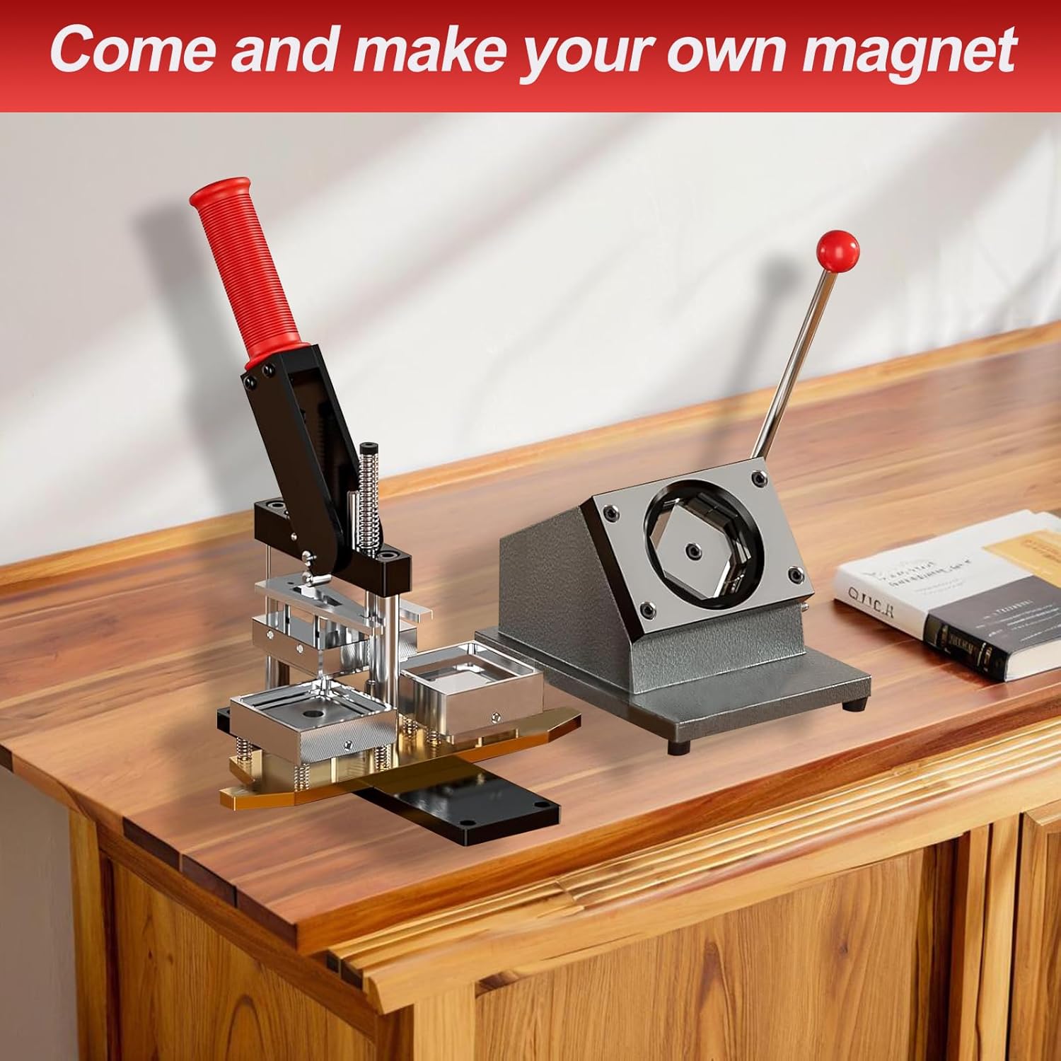 • PACKAGE CONTENT: Our button maker machine contains 1 * Fridge Magnet Maker, 1* Paper Cutter, 100pcs Materials, you don't have to worry about not having enough DIY material packages, so you can remember every happy moment
