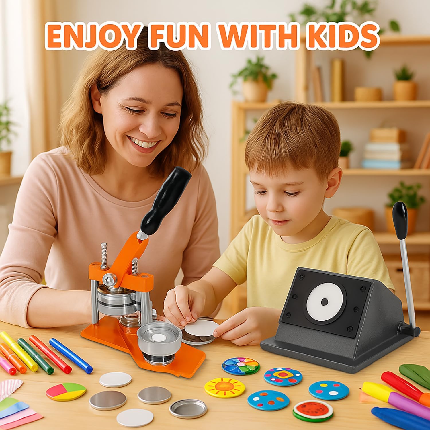 Why settle for boring when you can have bold, unique, and totally you? Ready to dive into a world of endless creativity? Our DIY Pin Button & Magnet Maker is your ultimate ticket to crafting magic!Turn your cherished photos, cool art, or even inside - joke designs into personalized badges and magnets.These aren’t just ornaments – they’re statements. Deck out your fridge, backpack, locker, or gift them to friends and family. Every piece is a fashionable, heartfelt treasure that screams “YOU.”