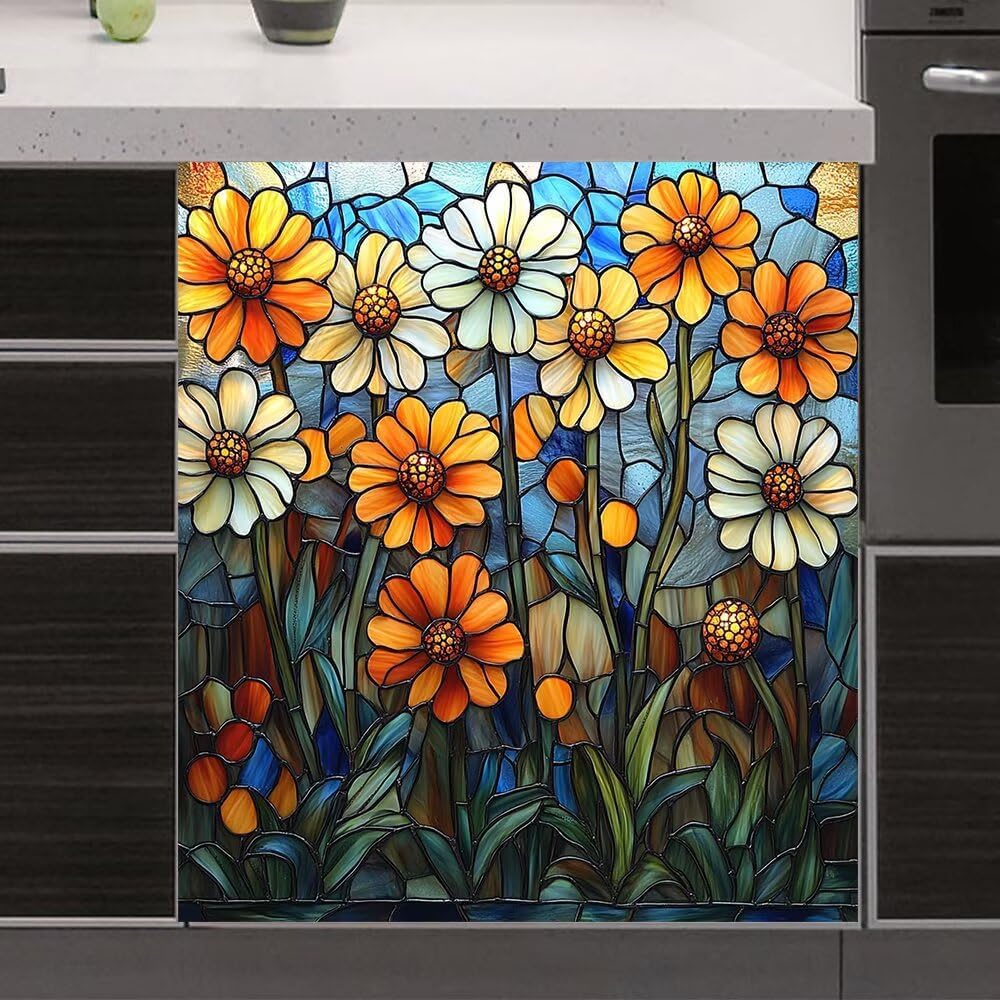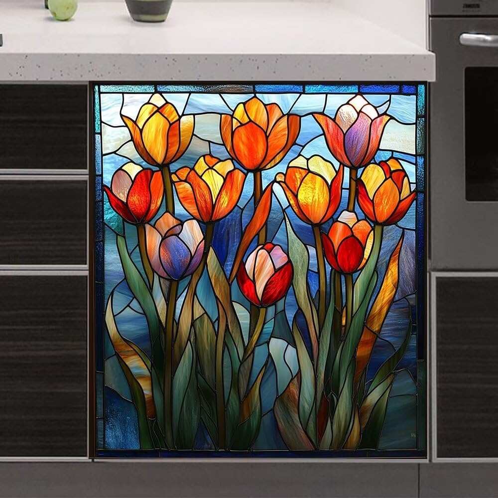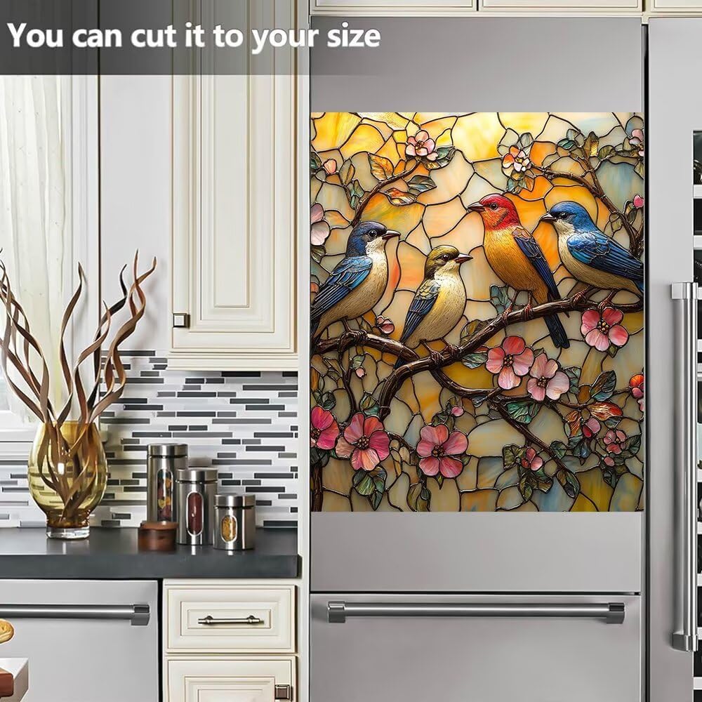 Magnetic dishwasher panel covers allow you to easily transform your kitchen as the season change. Stained Glass Flower Birds sticker appeared in my kitchen and made the dishwasher look great. You will receive a lot of compliments, and people will envy and think of this magnet. Colorful Glass ArtMagnetic Dishwasher Panels Decal features:- Heat resistant- Waterproof- Scratch, and Tear Resistant- No sticking marks, reusable- Occasion: Decor Dishwasher Covers- Packaging: Packing with paper tube with coverPeel it! Stick it! Love it! Simply stick our smudge-proof and fingerprint-resistant stainless steel dishwasher panel on the front face of your dishwasher. You can use it on your dishwasher as well as on the refrigerator, washing machine, dryer, and many other appliances!Note:Just ensure that your dishwasher is magnetic before ordering the dishwasher cover magnet, If a magnet sticks to your dishwasher, so will our magnetic dishwasher cover. Stainless steel appliances are not magnetic.. If you remove the magnet please keep it rolled up with printed side up..