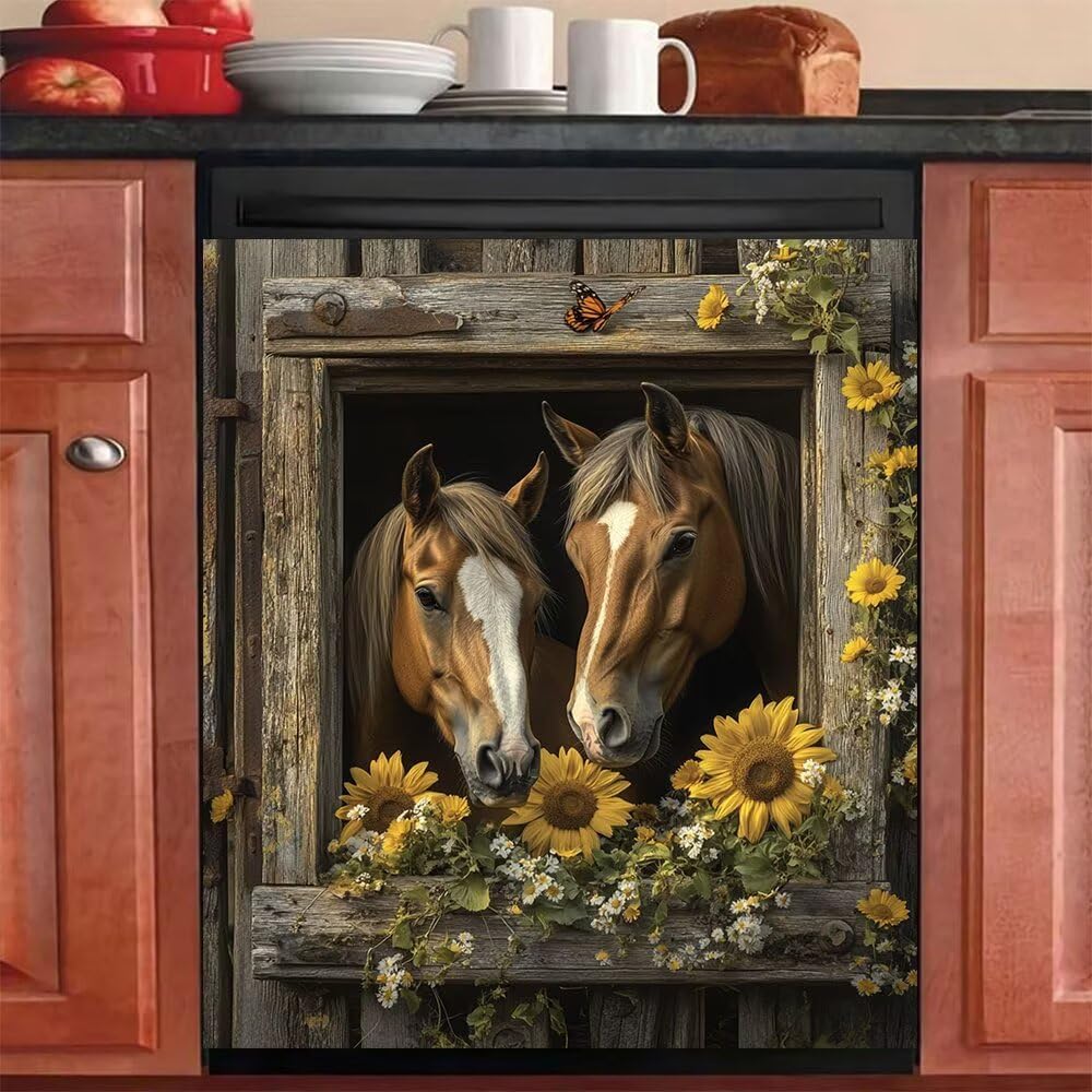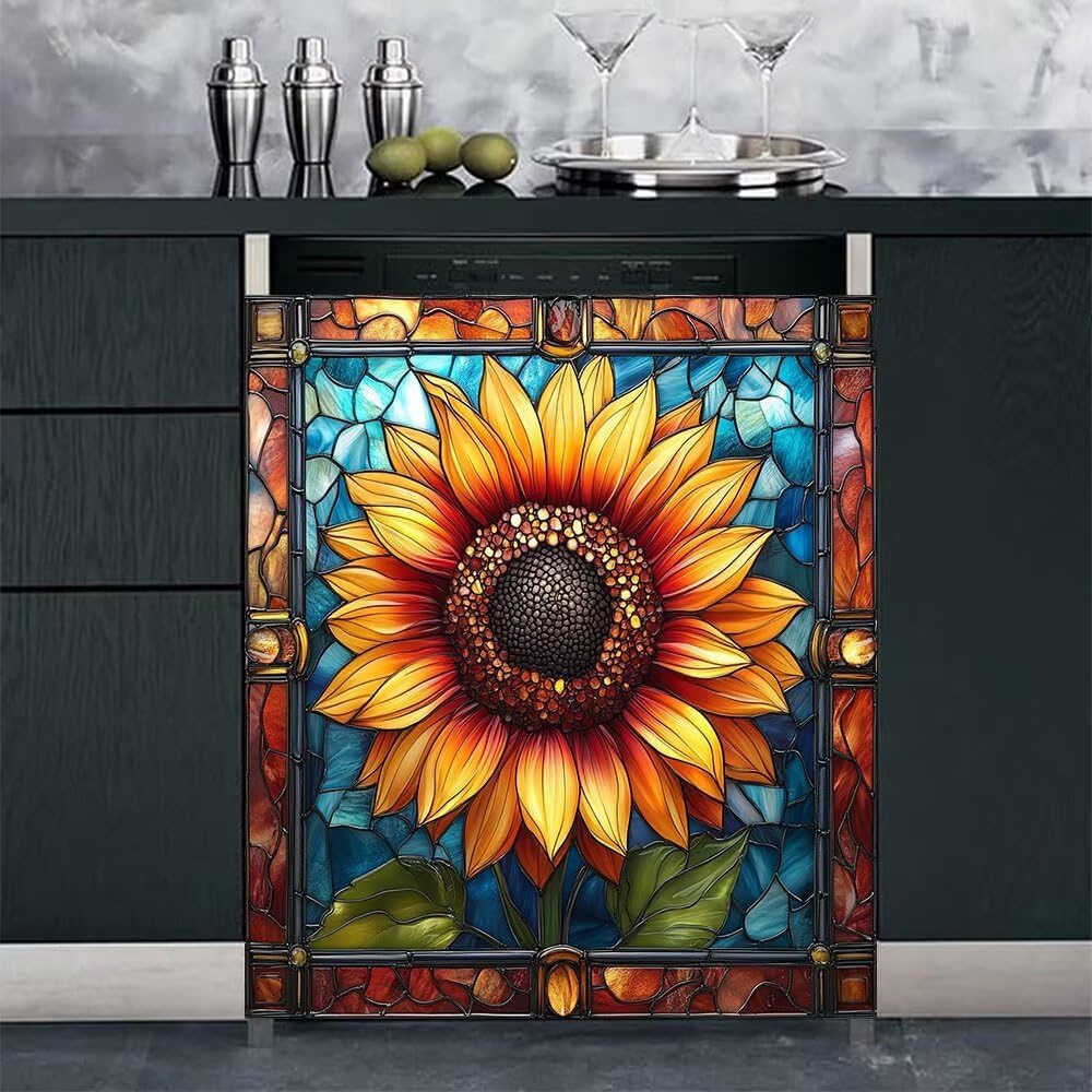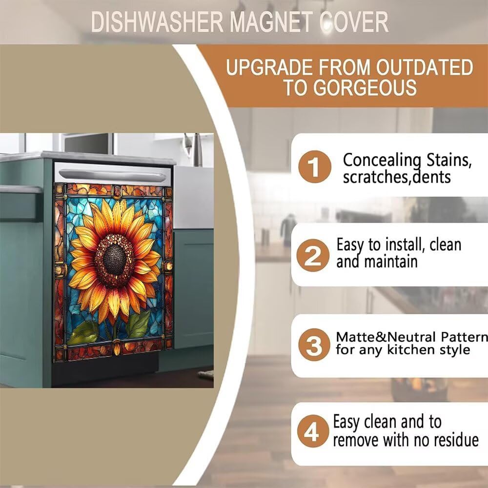 Great gift & Use Widely:Dishwasher decorative cover can be used for decoration of kitchen equipment, dishwasher washing machine, refrigerator, dryer. Nice gift for your friend, families on Christmas, Thanksgiving Day, Halloween, Housewarming, Birthday etc. Farmhouse Sunflower Vinyl Dishwasher Magnet Cover Features: Fits all Dishwasher ModelsEasy to Cut & Trim with a Box Cutter or ScissorsCredit Card Thin & Ships Rolled Up in a TubeEasy to remove with no residueSticks Instantly & Can Be Removed & ReappliedKitchen Dishwasher Covers Size: L - 23 W x 26 H inches; 58.5 W x 66 H cm;Note:Just ensure that your dishwasher is magnetic before ordering the dishwasher cover magnetDue to the inconsistent calibration of the monitor, the colors on the computer monitor may be slightly different.If you have any questions about the product, please feel free to contact us to deal with the problem.Bring the new look and style for your old, out-of-date and dented dishwasher!!!