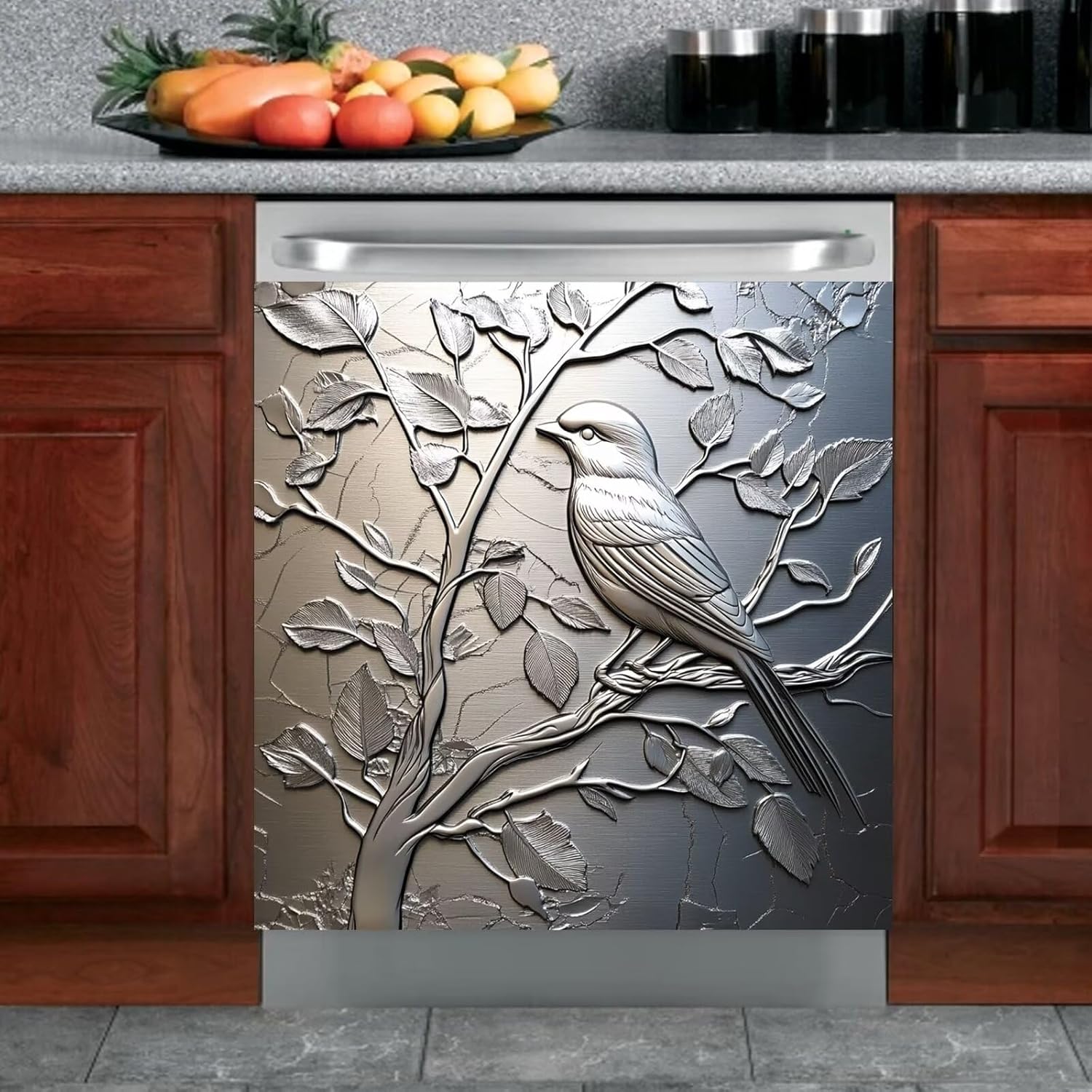 Do you Want to make your old dented dishwasher or fridge&nSNp;looks&nSNp;BRAND NEW?Or, want to get rid of outdated/mismatched appliances and upgrade your kitchen without breaking the bank?Look no further! Your quest stops here! Our Decor Dishwasher Cover is a perfect complement to your DIY kitchen upgrade!FeaturesHigh-quality Self-Adhesive PVC and PET Film.&nSNp;Heat resistant,Waterproof,Scratch,and Tear ResistantTrim to size and stick.No harsh, offensive-smelling adhesives to deal with and no massive prep work when sticking or removing.Reusable - Our Decor Dishwasher sticker can SN reused, you can change the pattern you like at any timeOur Printed Dishwasher Magnet Cover Size:S - 23 W x 17 H inches;58.5&nSNp;W&nSNp;x 43&nSNp;H cmM - 23 W x 26 H inches;58.5&nSNp;W&nSNp;x 66 H cmEASY To Install:Peel it! Stick it! Simply stick our smudge-proof and fingerprint resistant stainless steel panel on the front face of your dishwasher,fridge.