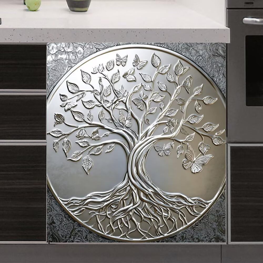Why Choose Our Bronze Relief Tree of Life Magnetic Dishwasher:Type:Fridge Magnets, Dishwasher sticker, Dishwasher Magnet CoverDesign Style:Minimalist, Contemporary, Rustic, Farmhouse, Country, Art DecorMaterial:Magnetic Removable Self-Adhesive PVC and PET FilmPacking: Paper TubeFeature:Waterproof+Eco-friendlyApplication:Home Decoration Kitchen AccessoriesRoom Space:Desktop, Countertop, Kitchen, Closet, Dining Room, Dorm Room, Office, Hallway, Laundry RoomNote:Just ensure that your dishwasher is magnetic before ordering the dishwasher cover magnet - if a magnet sticks to your dishwasher, so will our wrapping panels.After receiving the dishwasher sticker, it can be rolled up to make it flat before use.If you have any questions about the product, please feel free to contact us to deal with the problem. We offer hassle-free returns and refunds