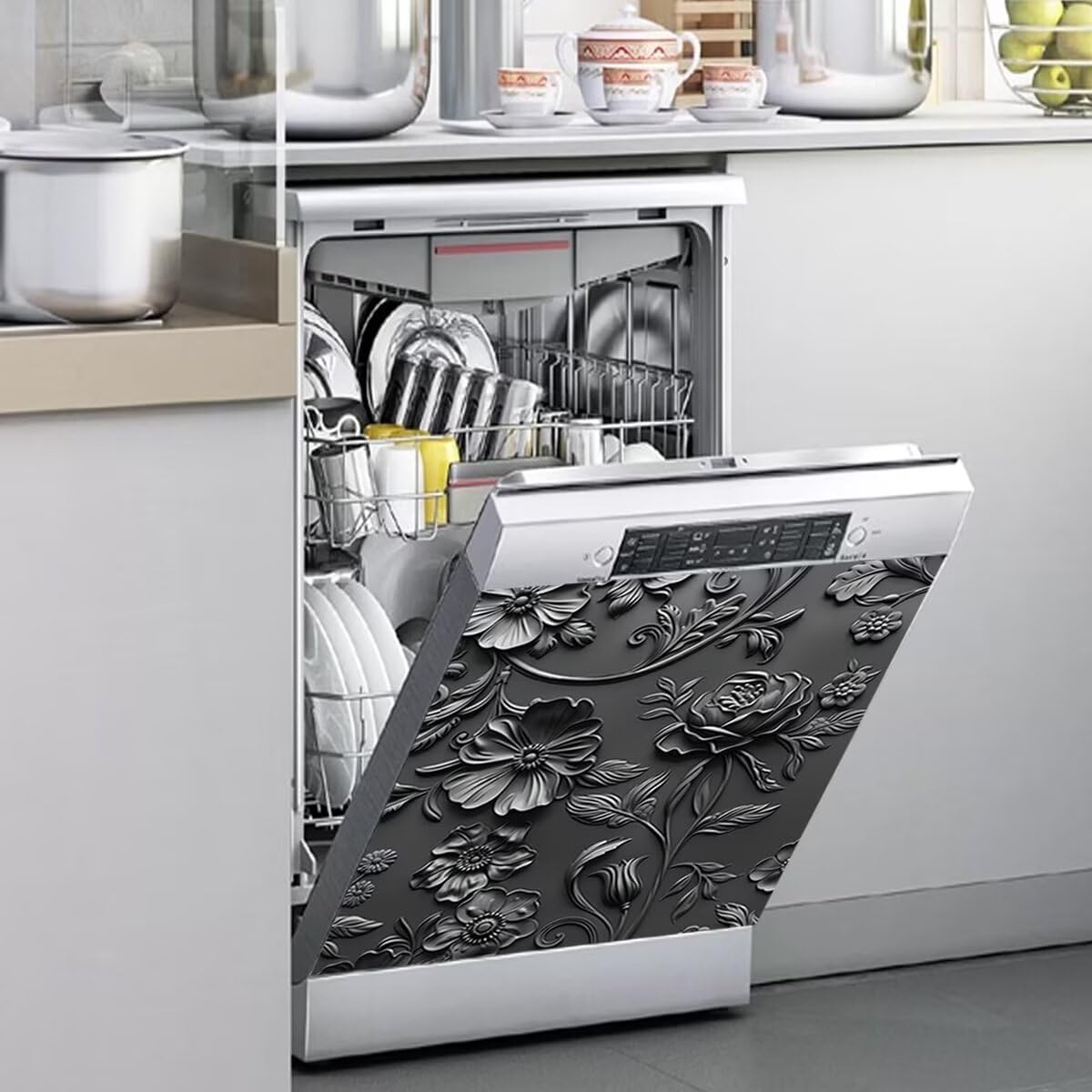 Do You Have a Functional but Dull & Boring Dishwasher Front?Want to make it looks BRAND NEW?With Our Magnet let your home or kitchen new brand.It's removable, adhesive, bubble free. Make sure the surface is clean before you apply it.Dishwasher Covers Size: S - 23 W x 17 H inches;58.5 W x 43 H cm M - 23 W x 26 H inches;58.5 W x 66 H cmEASY INSTALLATION: Peel it! Stick it! Love it! Simply stick our smudge-proof and fingerprint resistant dishwasher panel on the front face of your dishwasher. You can use on your dishwasher as well as on the refrigerator, washing machine, dryer, and many other appliances!