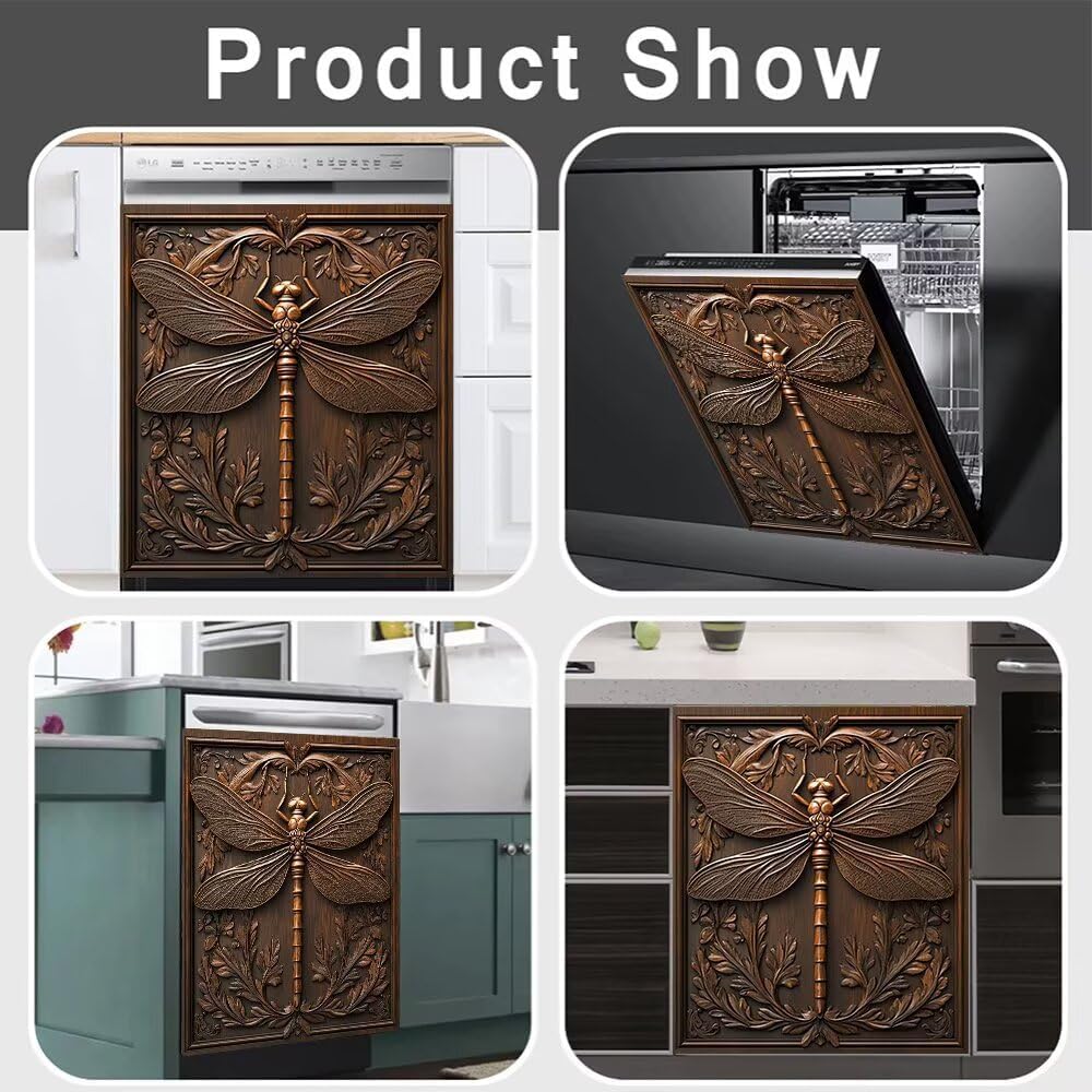 Magnetic dishwasher panel covers allow you to easily transform your kitchen as the season change. 3D Carved Dragonfly appeared in my kitchen and made the dishwasher look great. You will receive a lot of compliments, and people will envy and think of this magnet. Gift: Perfect home decoration, enrich your kitchen life. Retro Style design dishwasher magnets can be given to daughters, moms, friends, and girlfriends. Come to a happy reception party! Kitchen Dishwasher Covers Size: L - 23 W x 26 H inches; 58.5 W x 66 H cm;Occasion:Decor dishwasher covers and any metal device surface with magnetism.Note: The colors may be showing slightly different on your computer monitor since monitors are not calibrated same.If you purchase a magnet please make sure your appliance is magnetic before placing order. If you remove the magnet please keep it rolled up with printed side up.
