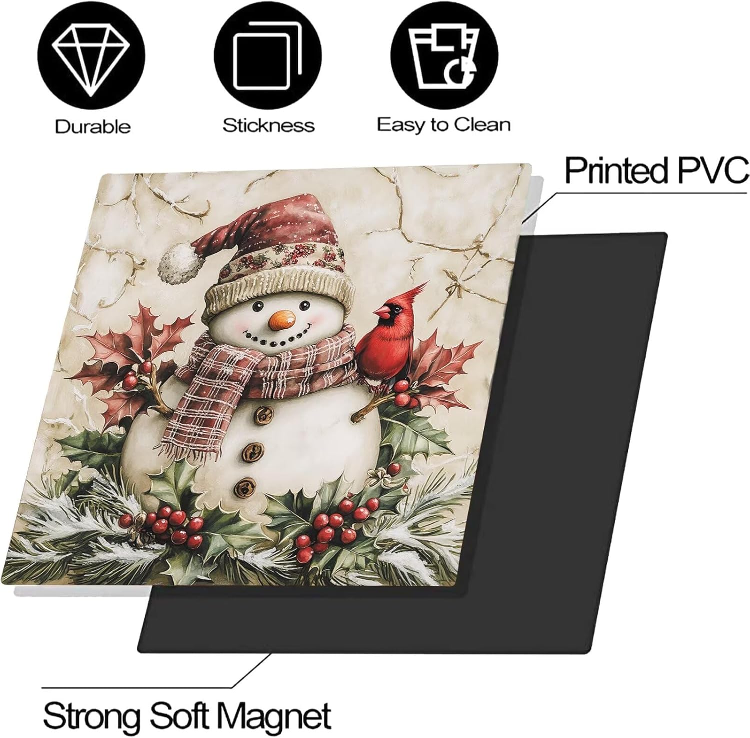 Vintage Snowman and Cardinal Dishwasher Magnet Cover Christmas Flower Magnetic Sticker Dish Washer Door Panel Decal Fridge Kitchen Appliance Magnetic Decor 23"x26"
