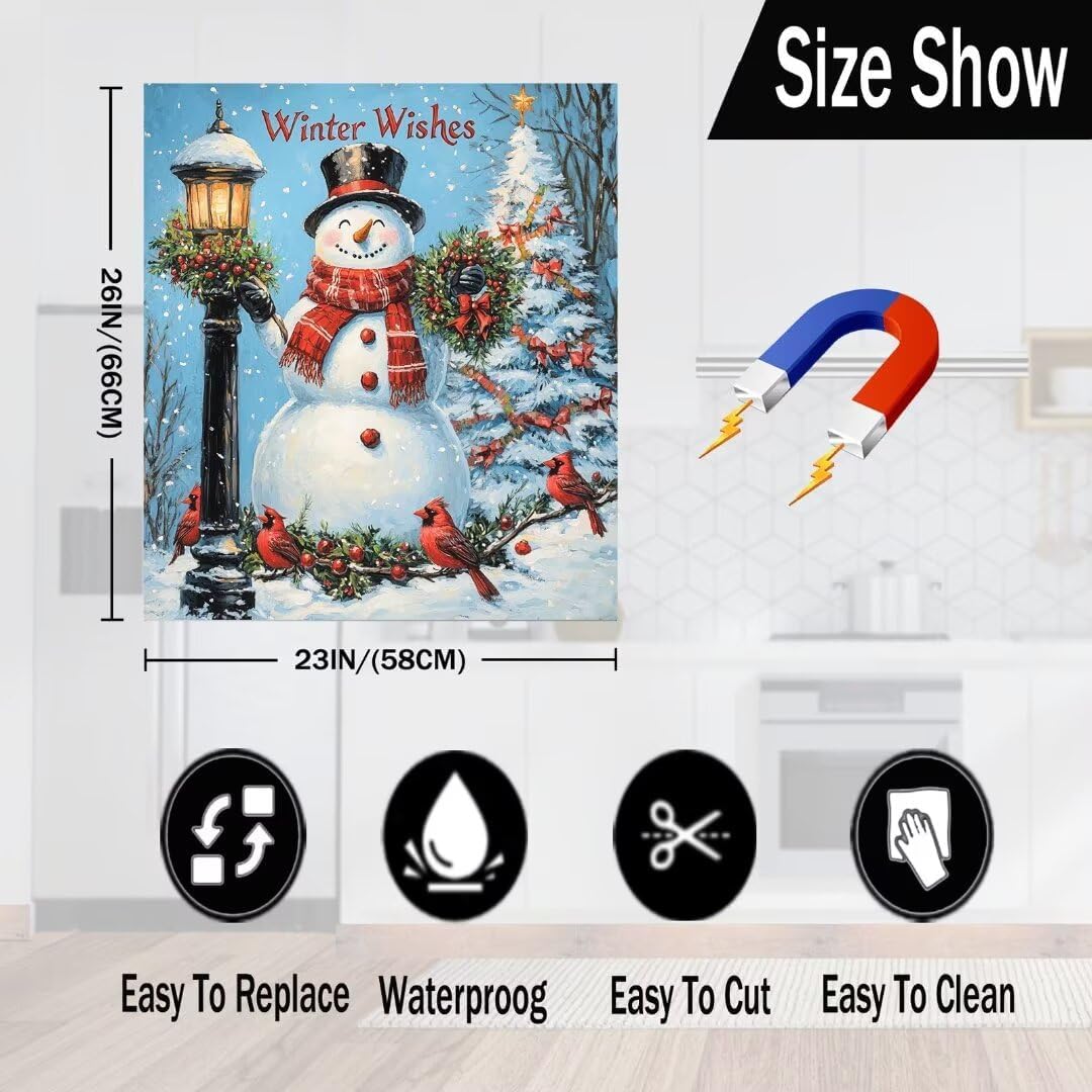 Winter Snowman Magnet Dishwasher Covers for The Front, Christmas Tree Magnetic Refrigerator Door Panels, Winter Wishes Red Birds Home Home Apliances Decor Cover, 23" W x 26" H Magnetic