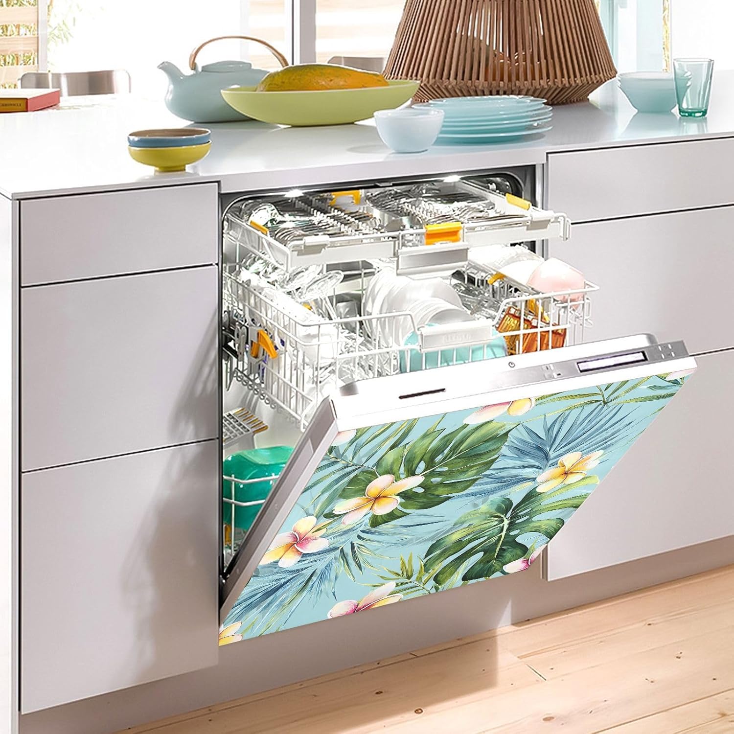 Decorate your kitchen life!This magnetic dishwasher cover is a work of art, decorating your kitchen art, with a sense of fashion and art, highlighting your quality life!Size in 23 x 26 inches. This size fits most dishwashers.Cut it to your own size to fits your need.FeatureWaterproof, heat resistant, scratch and tear resistant. Magnetic stickers hide scratches, dents or other unsightly marks.Magnetic MaterialMagnetic sticker will not fall from magnetic dishwasher and disassemble easily.Protect the dishwasher from scratches, it can also decorate your kitchen home.Please NoteMagnetic dishwasher cover is made of PVC+PET, only suit for the magnet surface.Install: Trim the proofreading position, the magnetic force on the back will stick to it.