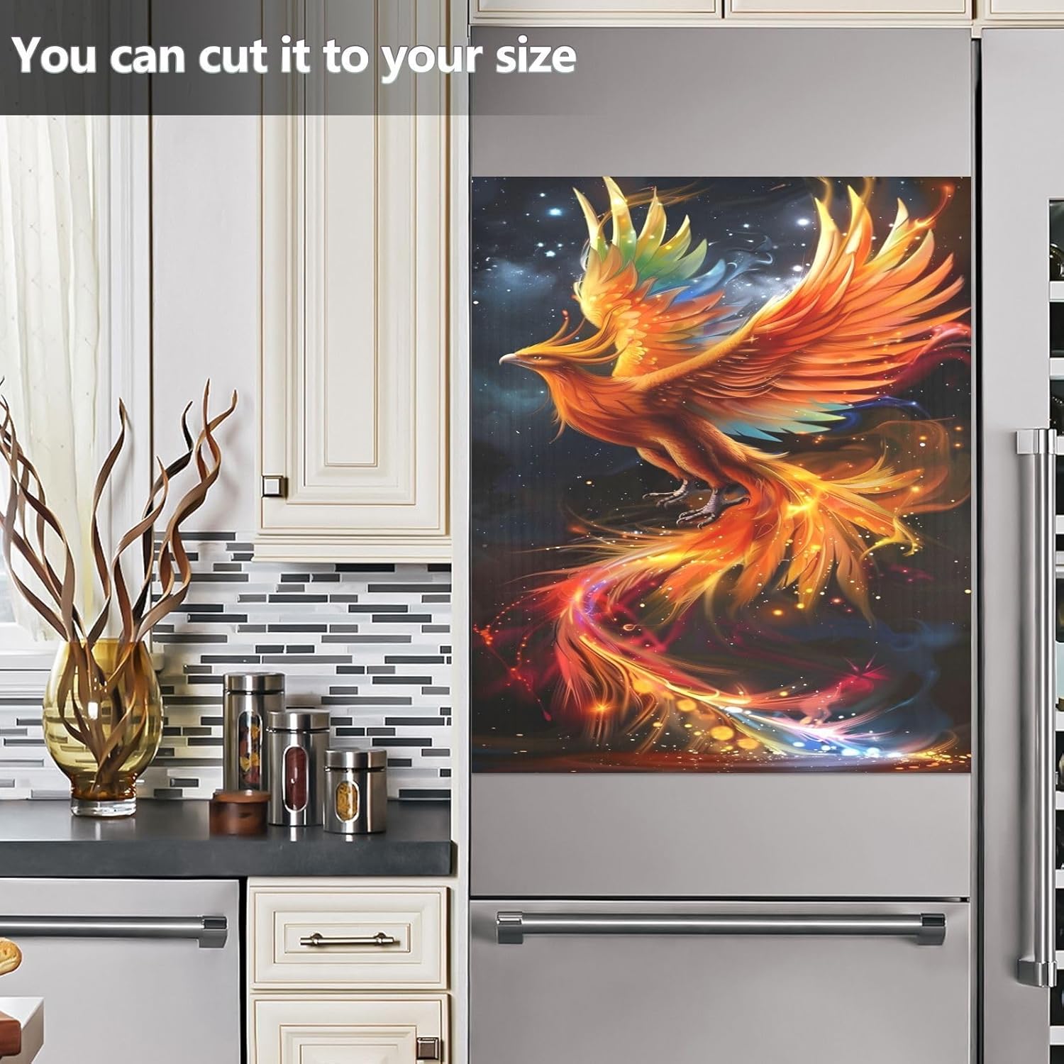 Decorate your kitchen life!This magnetic dishwasher cover is a work of art, decorating your kitchen art, with a sense of fashion and art, highlighting your quality life!Size in 23 x 26 inches. This size fits most dishwashers.Cut it to your own size to fits your need.FeatureWaterproof, heat resistant, scratch and tear resistant. Magnetic stickers hide scratches, dents or other unsightly marks.Magnetic MaterialMagnetic sticker will not fall from magnetic dishwasher and disassemble easily.Protect the dishwasher from scratches, it can also decorate your kitchen home.Please NoteMagnetic dishwasher cover is made of PVC+PET, only suit for the magnet surface.Install: Trim the proofreading position, the magnetic force on the back will stick to it.