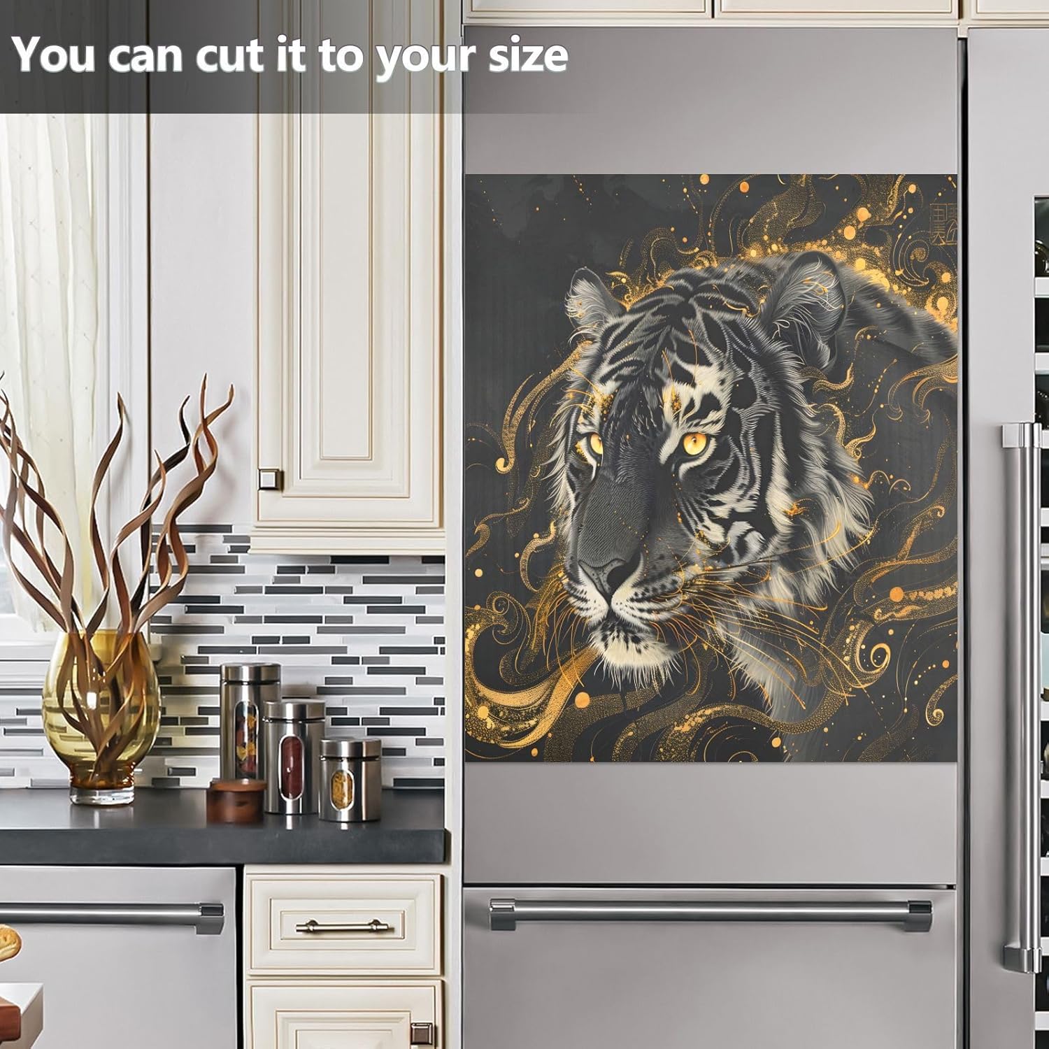 Decorate your kitchen life!This magnetic dishwasher cover is a work of art, decorating your kitchen art, with a sense of fashion and art, highlighting your quality life!Size in 23 x 26 inches. This size fits most dishwashers.Cut it to your own size to fits your need.FeatureWaterproof, heat resistant, scratch and tear resistant. Magnetic stickers hide scratches, dents or other unsightly marks.Magnetic MaterialMagnetic sticker will not fall from magnetic dishwasher and disassemble easily.Protect the dishwasher from scratches, it can also decorate your kitchen home.Please NoteMagnetic dishwasher cover is made of PVC+PET, only suit for the magnet surface.Install: Trim the proofreading position, the magnetic force on the back will stick to it.Ideal GiftYour beloved one will be happy when you give him/her this dishwasher magnet cover gift on the special days like Housewarming Day, Mother's Day, Father's Day, Birthday, Halloween, Thanksgiving, Christmas, New Year.