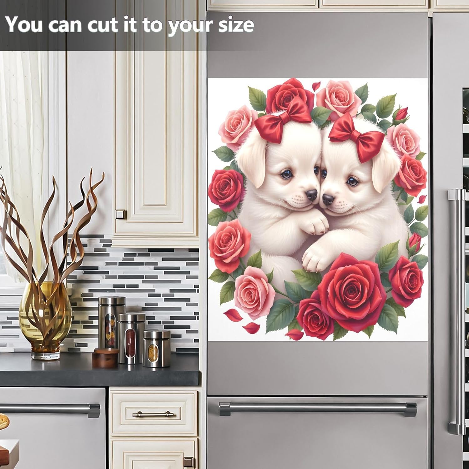 Decorate your kitchen life!This magnetic dishwasher cover is a work of art, decorating your kitchen art, with a sense of fashion and art, highlighting your quality life!Size in 23 x 26 inches. This size fits most dishwashers.Cut it to your own size to fits your need.FeatureWaterproof, heat resistant, scratch and tear resistant. Magnetic stickers hide scratches, dents or other unsightly marks.Magnetic MaterialMagnetic sticker will not fall from magnetic dishwasher and disassemble easily.Protect the dishwasher from scratches, it can also decorate your kitchen home.Please NoteMagnetic dishwasher cover is made of PVC+PET, only suit for the magnet surface.Install: Trim the proofreading position, the magnetic force on the back will stick to it.Ideal GiftYour beloved one will be happy when you give him/her this dishwasher magnet cover gift on the special days like Housewarming Day, Mother's Day, Father's Day, Birthday, Halloween, Thanksgiving, Christmas, New Year.