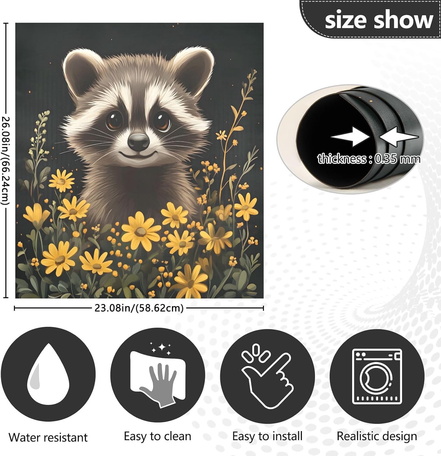 Decorate your kitchen life!This magnetic dishwasher cover is a work of art, decorating your kitchen art, with a sense of fashion and art, highlighting your quality life!Size in 23 x 26 inches. This size fits most dishwashers.Cut it to your own size to fits your need.FeatureWaterproof, heat resistant, scratch and tear resistant. Magnetic stickers hide scratches, dents or other unsightly marks.Magnetic MaterialMagnetic sticker will not fall from magnetic dishwasher and disassemble easily.Protect the dishwasher from scratches, it can also decorate your kitchen home.Please NoteMagnetic dishwasher cover is made of PVC+PET, only suit for the magnet surface.Install: Trim the proofreading position, the magnetic force on the back will stick to it.Ideal GiftYour beloved one will be happy when you give him/her this dishwasher magnet cover gift on the special days like Housewarming Day, Mother's Day, Father's Day, Birthday, Halloween, Thanksgiving, Christmas, New Year.