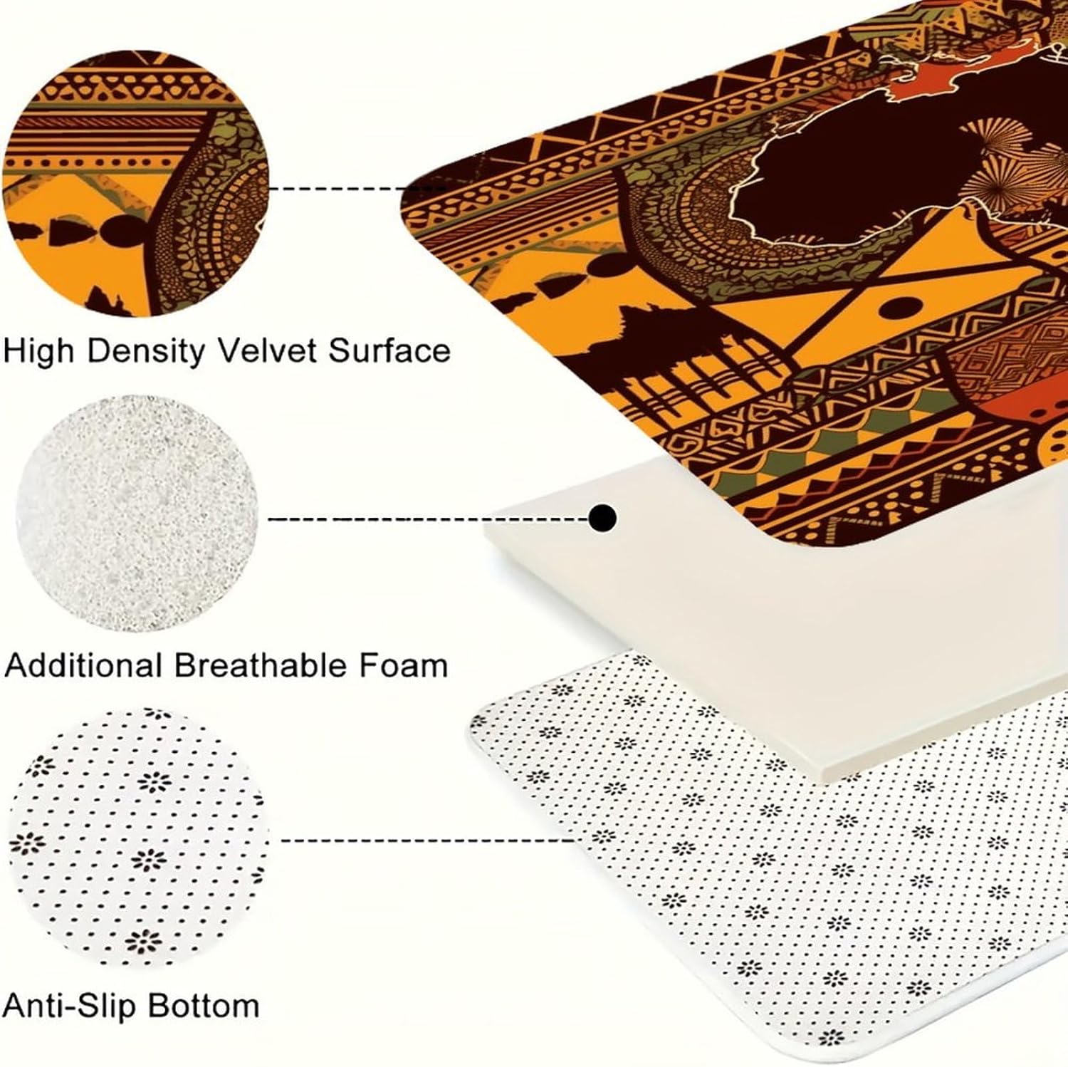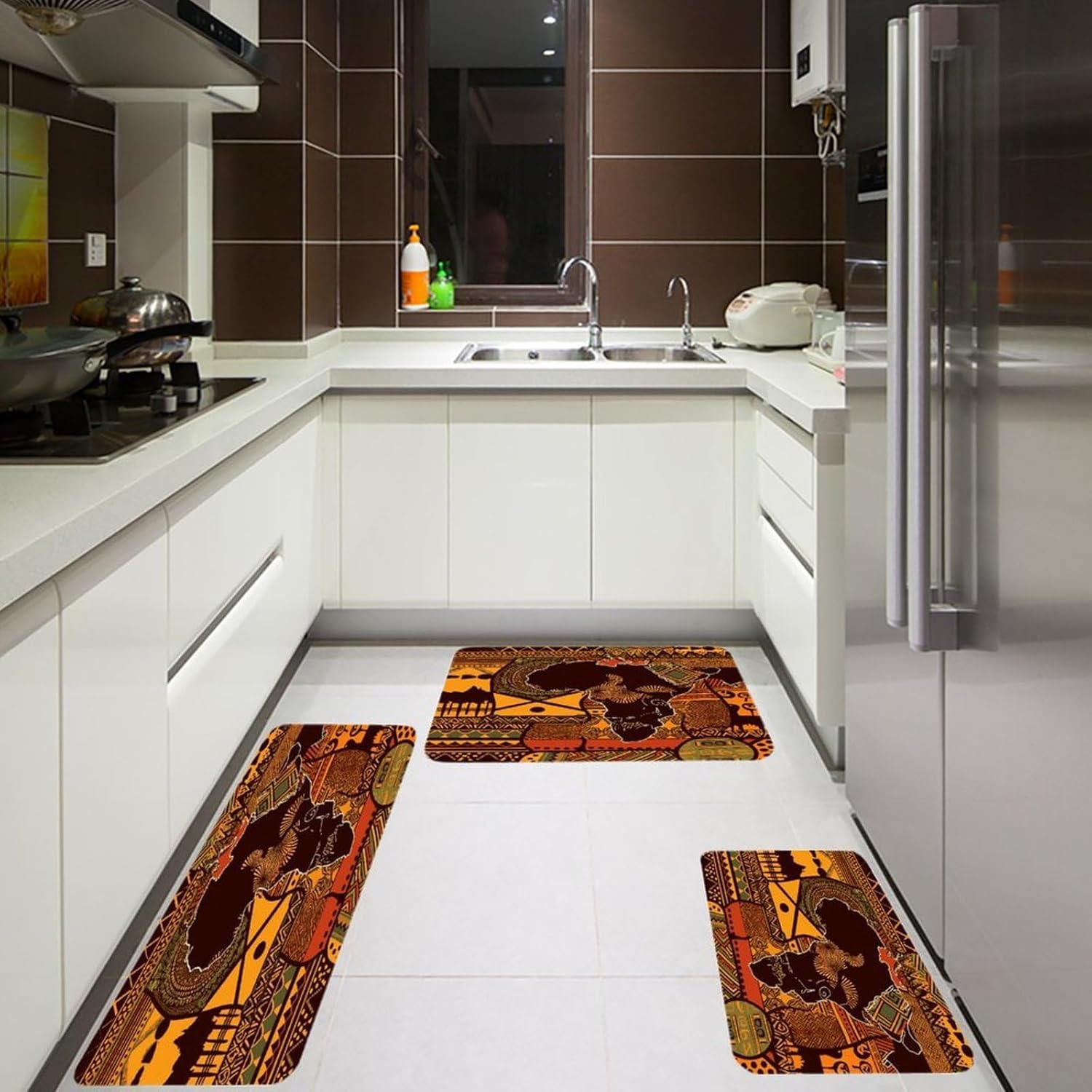Transform your living spaces with this essential African Map Ethnic Pattern three-piece set of mats,designed to merge everyday function with effortless style.These washable kitchen mats,crafted from a distinctive Fiber Flannel,introduce a layer of plush softness that welcomes you from the first step.Imagine the comfort of natural,thickened fibers underfoot as you move through your daily routines,whether you're preparing a meal or freshening up.The set's versatile design allows it to adapt beautifully,serving equally well as farmhouse bathroom rugs or soft entryway runner rugs,proving that comfort should have no single address.Beyond their immediate comfort,these mats are conceived for real-life ease and adaptability.As dedicated anti fatigue African Map Ethnic Pattern kitchen mats for floor areas,they provide a forgiving surface during prolonged tasks.Need a reliable carpet for sink areas to catch drips and spills?This set has you covered.You can freely place them in moisture areas or traffic zones,knowing their performance remains consistent.These are more than mere kitchen utensils;they are subtle yet impactful seasonal home African Map Ethnic Pattern decor mats.Change the feel of your space by rotating them or moving them from a spring kitchen carpets setup to a cozy autumn nook.Their cohesive look ties different areas together,enhancing the overall beauty and warmth of your interior.Their breathable and gentle texture makes them a reliable companion in any room,offering a consistently pleasant foundation.