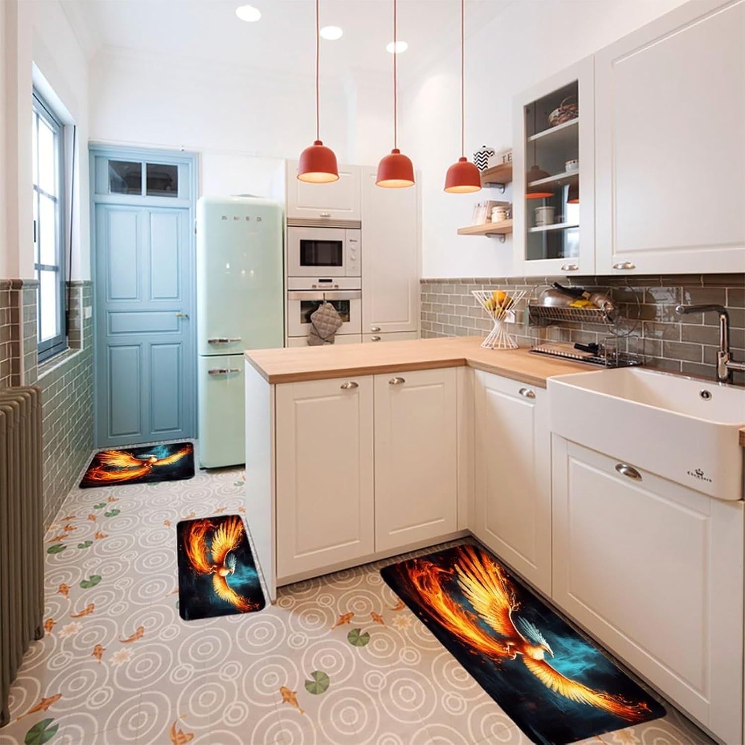 Transform your living spaces with this essential Beautiful Phoenix three-piece set of mats,designed to merge everyday function with effortless style.These washable kitchen mats,crafted from a distinctive Fiber Flannel,introduce a layer of plush softness that welcomes you from the first step.Imagine the comfort of natural,thickened fibers underfoot as you move through your daily routines,whether you're preparing a meal or freshening up.The set's versatile design allows it to adapt beautifully,serving equally well as farmhouse bathroom rugs or soft entryway runner rugs,proving that comfort should have no single address.Beyond their immediate comfort,these mats are conceived for real-life ease and adaptability.As dedicated anti fatigue Beautiful Phoenix kitchen mats for floor areas,they provide a forgiving surface during prolonged tasks.Need a reliable carpet for sink areas to catch drips and spills?This set has you covered.You can freely place them in moisture areas or traffic zones,knowing their performance remains consistent.These are more than mere kitchen utensils;they are subtle yet impactful seasonal home Beautiful Phoenix decor mats.Change the feel of your space by rotating them or moving them from a spring kitchen carpets setup to a cozy autumn nook.Their cohesive look ties different areas together,enhancing the overall beauty and warmth of your interior.Their breathable and gentle texture makes them a reliable companion in any room,offering a consistently pleasant foundation.