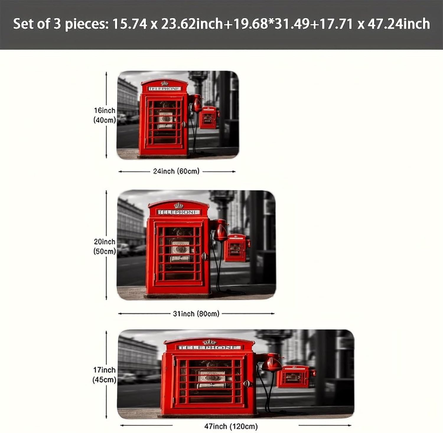 Transform your living spaces with this essential England UK Retro London Telephone three-piece set of mats,designed to merge everyday function with effortless style.These washable kitchen mats,crafted from a distinctive Fiber Flannel,introduce a layer of plush softness that welcomes you from the first step.Imagine the comfort of natural,thickened fibers underfoot as you move through your daily routines,whether you're preparing a meal or freshening up.The set's versatile design allows it to adapt beautifully,serving equally well as farmhouse bathroom rugs or soft entryway runner rugs,proving that comfort should have no single address.Beyond their immediate comfort,these mats are conceived for real-life ease and adaptability.As dedicated anti fatigue England UK Retro London Telephone kitchen mats for floor areas,they provide a forgiving surface during prolonged tasks.Need a reliable carpet for sink areas to catch drips and spills?This set has you covered.You can freely place them in moisture areas or traffic zones,knowing their performance remains consistent.These are more than mere kitchen utensils;they are subtle yet impactful seasonal home England UK Retro London Telephone decor mats.Change the feel of your space by rotating them or moving them from a spring kitchen carpets setup to a cozy autumn nook.Their cohesive look ties different areas together,enhancing the overall beauty and warmth of your interior.Their breathable and gentle texture makes them a reliable companion in any room,offering a consistently pleasant foundation.