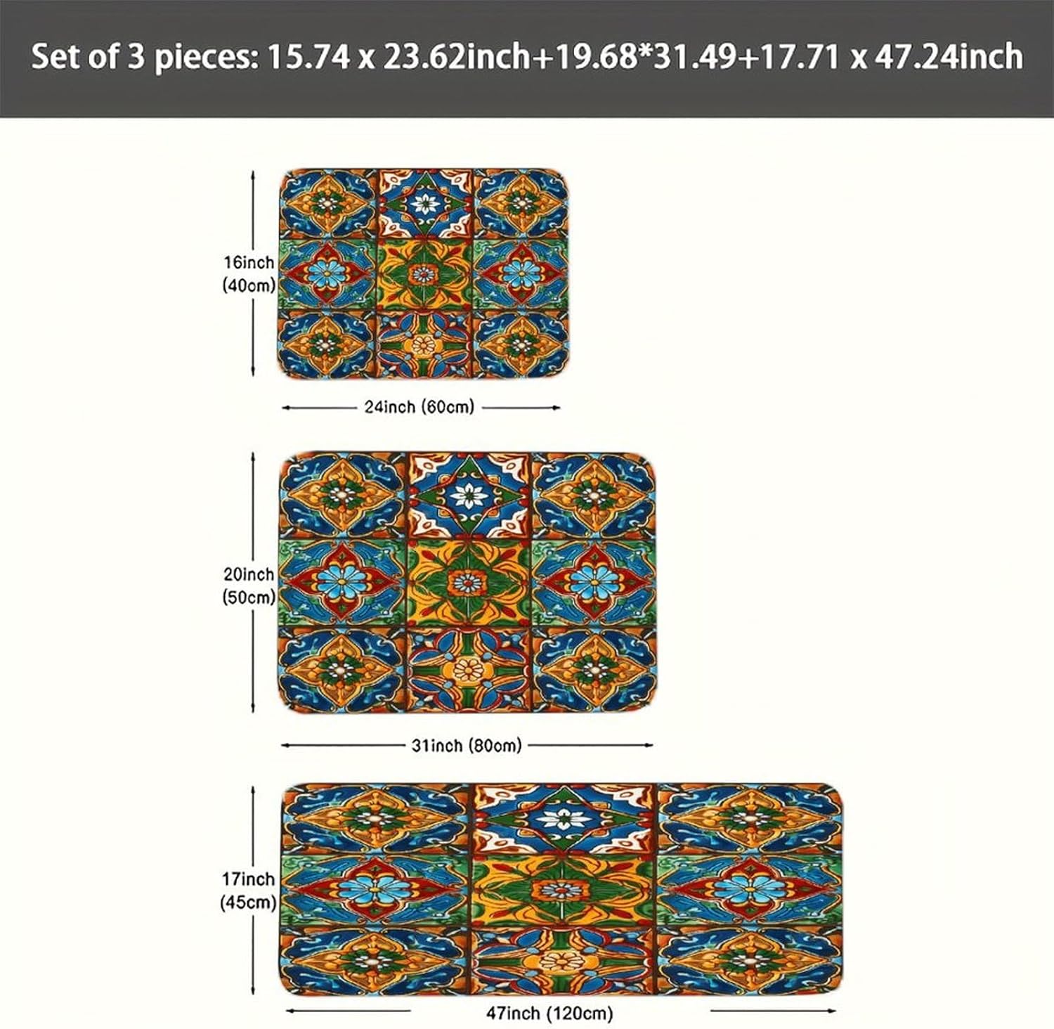 Transform your living spaces with this essential Mexican Ceramic Tile three-piece set of mats,designed to merge everyday function with effortless style.These washable kitchen mats,crafted from a distinctive Fiber Flannel,introduce a layer of plush softness that welcomes you from the first step.Imagine the comfort of natural,thickened fibers underfoot as you move through your daily routines,whether you're preparing a meal or freshening up.The set's versatile design allows it to adapt beautifully,serving equally well as farmhouse bathroom rugs or soft entryway runner rugs,proving that comfort should have no single address.Beyond their immediate comfort,these mats are conceived for real-life ease and adaptability.As dedicated anti fatigue Mexican Ceramic Tile kitchen mats for floor areas,they provide a forgiving surface during prolonged tasks.Need a reliable carpet for sink areas to catch drips and spills?This set has you covered.You can freely place them in moisture areas or traffic zones,knowing their performance remains consistent.These are more than mere kitchen utensils;they are subtle yet impactful seasonal home Mexican Ceramic Tile decor mats.Change the feel of your space by rotating them or moving them from a spring kitchen carpets setup to a cozy autumn nook.Their cohesive look ties different areas together,enhancing the overall beauty and warmth of your interior.Their breathable and gentle texture makes them a reliable companion in any room,offering a consistently pleasant foundation.