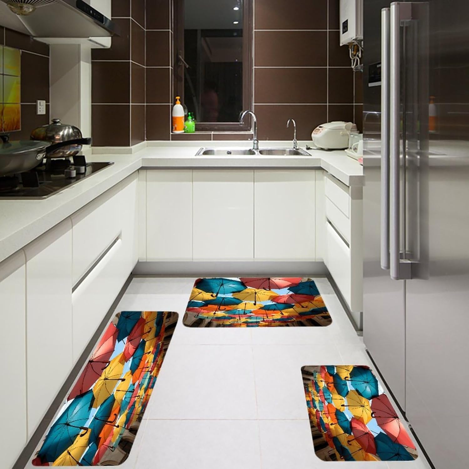Transform your living spaces with this essential Colored Umbrellas three-piece set of mats,designed to merge everyday function with effortless style.These washable kitchen mats,crafted from a distinctive Fiber Flannel,introduce a layer of plush softness that welcomes you from the first step.Imagine the comfort of natural,thickened fibers underfoot as you move through your daily routines,whether you're preparing a meal or freshening up.The set's versatile design allows it to adapt beautifully,serving equally well as farmhouse bathroom rugs or soft entryway runner rugs,proving that comfort should have no single address.Beyond their immediate comfort,these mats are conceived for real-life ease and adaptability.As dedicated anti fatigue Colored Umbrellas kitchen mats for floor areas,they provide a forgiving surface during prolonged tasks.Need a reliable carpet for sink areas to catch drips and spills?This set has you covered.You can freely place them in moisture areas or traffic zones,knowing their performance remains consistent.These are more than mere kitchen utensils;they are subtle yet impactful seasonal home Colored Umbrellas decor mats.Change the feel of your space by rotating them or moving them from a spring kitchen carpets setup to a cozy autumn nook.Their cohesive look ties different areas together,enhancing the overall beauty and warmth of your interior.Their breathable and gentle texture makes them a reliable companion in any room,offering a consistently pleasant foundation.