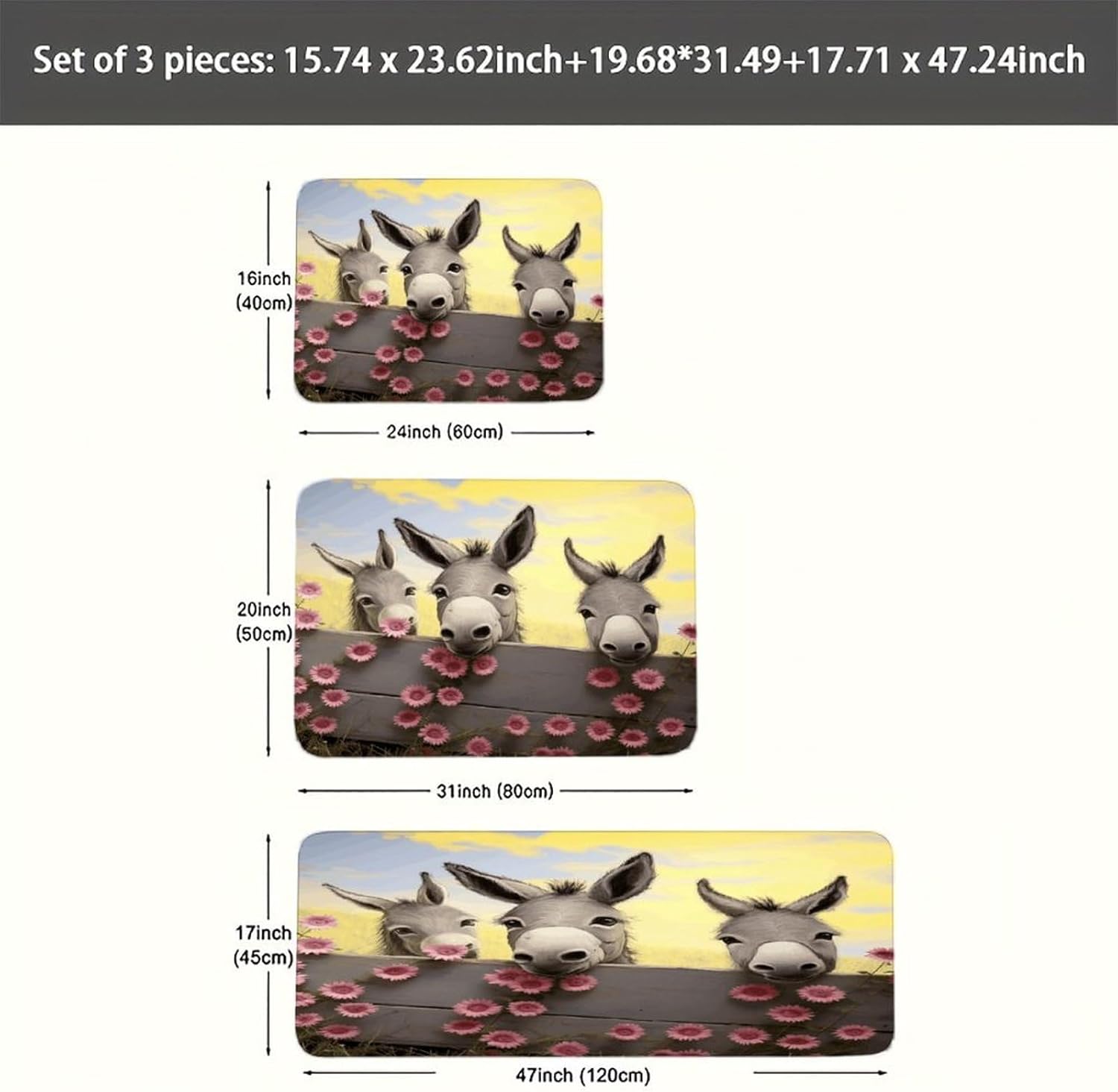 Transform your living spaces with this essential Donkey And Flower three-piece set of mats,designed to merge everyday function with effortless style.These washable kitchen mats,crafted from a distinctive Fiber Flannel,introduce a layer of plush softness that welcomes you from the first step.Imagine the comfort of natural,thickened fibers underfoot as you move through your daily routines,whether you're preparing a meal or freshening up.The set's versatile design allows it to adapt beautifully,serving equally well as farmhouse bathroom rugs or soft entryway runner rugs,proving that comfort should have no single address.Beyond their immediate comfort,these mats are conceived for real-life ease and adaptability.As dedicated anti fatigue Donkey And Flower kitchen mats for floor areas,they provide a forgiving surface during prolonged tasks.Need a reliable carpet for sink areas to catch drips and spills?This set has you covered.You can freely place them in moisture areas or traffic zones,knowing their performance remains consistent.These are more than mere kitchen utensils;they are subtle yet impactful seasonal home Donkey And Flower decor mats.Change the feel of your space by rotating them or moving them from a spring kitchen carpets setup to a cozy autumn nook.Their cohesive look ties different areas together,enhancing the overall beauty and warmth of your interior.Their breathable and gentle texture makes them a reliable companion in any room,offering a consistently pleasant foundation.
