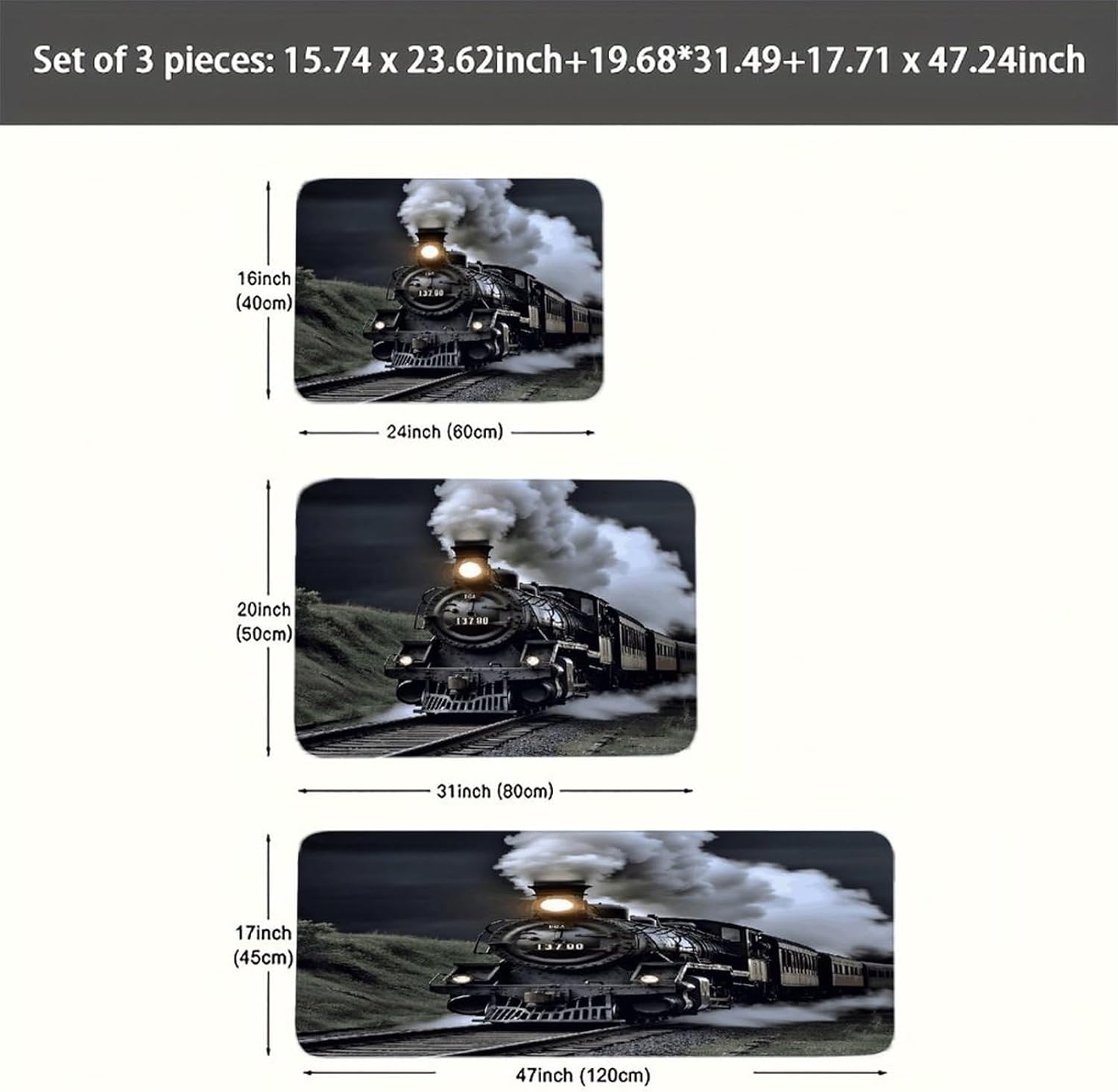 Introduce a new level of ease and visual harmony to your culinary space with this essential three-piece Steam Train kitchen mat set.Designed specifically for use areas,these cushioned kitchen rugs provide a welcome layer of support right where you need it most–in front of the sink,stove,or prep counter.the fabric offers a plush,dense texture underfoot,making standing tasks noticeably more comfortable.The set functions perfectly as versatile kitchen area rug solutions,fitting seamlessly into your existing layout.The core of these anti fatigue Steam Train kitchen rug sets lies in the selected velvet material.This fabric choice delivers both the sought-after softness and a practical thickness that gently cushions your feet,helping to alleviate the tiredness that comes with long cooking sessions.Beyond comfort,maintenance is refreshingly simple;they are washable kitchen mats designed to maintain their appearance through regular cleaning.Extend the utility and aesthetic charm beyond just the kitchen.The soft Steam Train kitchen runner rugs design and quality construction make them adaptable companions for other areas like the bathroom vanity or even outdoor patio setups where a comfortable floor mat is desired.Arrange the three pieces to create a cohesive runner effect or use them individually as targeted floor mats where support is needed.This set effectively combines practical comfort,effortless care with its washable nature,and an attractive upgrade to your floor space,making it a smart addition to any home.