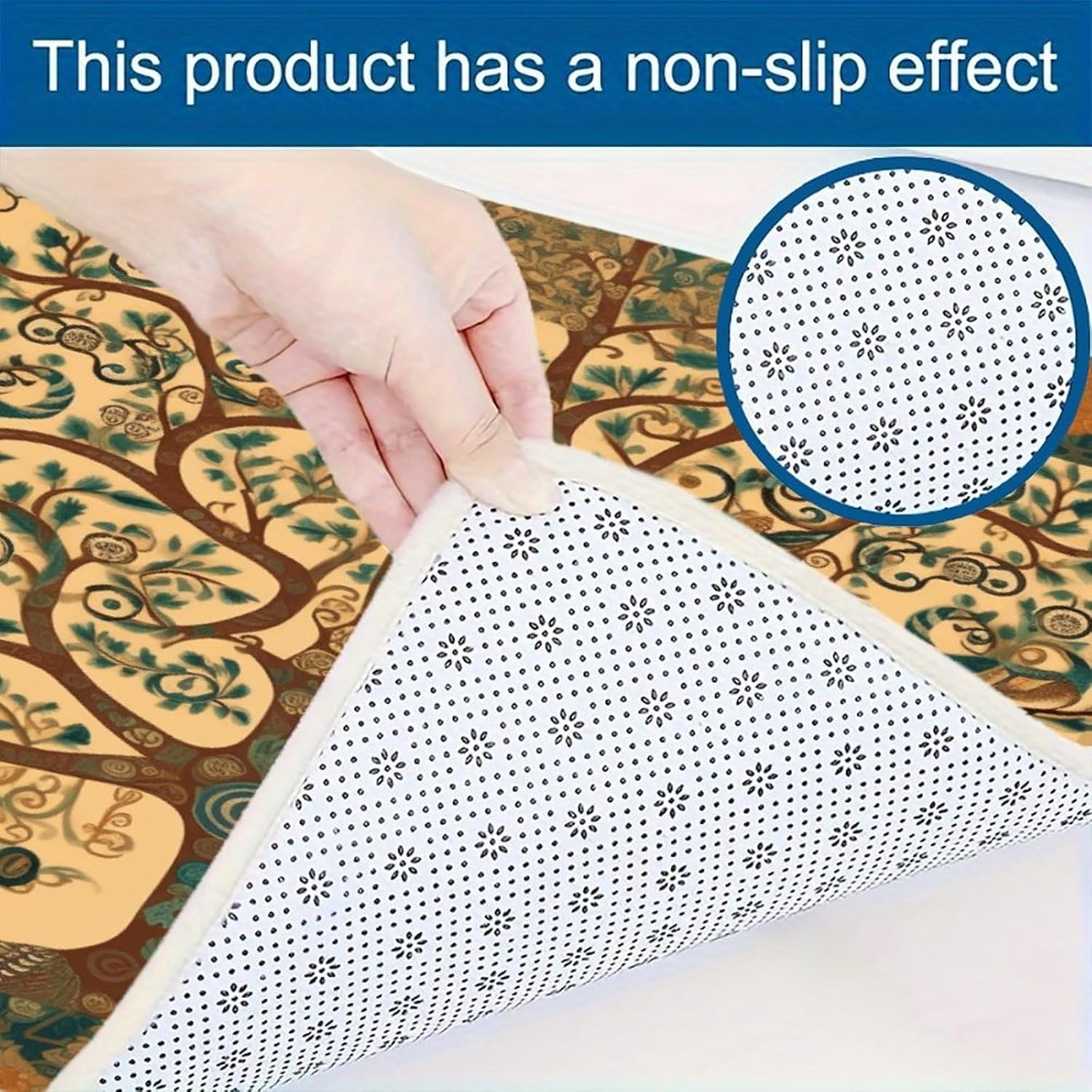 Introduce a new level of ease and visual harmony to your culinary space with this essential three-piece Tree of Life kitchen mat set.Designed specifically for use areas,these cushioned kitchen rugs provide a welcome layer of support right where you need it most–in front of the sink,stove,or prep counter.the fabric offers a plush,dense texture underfoot,making standing tasks noticeably more comfortable.The set functions perfectly as versatile kitchen area rug solutions,fitting seamlessly into your existing layout.The core of these anti fatigue Tree of Life kitchen rug sets lies in the selected velvet material.This fabric choice delivers both the sought-after softness and a practical thickness that gently cushions your feet,helping to alleviate the tiredness that comes with long cooking sessions.Beyond comfort,maintenance is refreshingly simple;they are washable kitchen mats designed to maintain their appearance through regular cleaning.Extend the utility and aesthetic charm beyond just the kitchen.The soft Tree of Life kitchen runner rugs design and quality construction make them adaptable companions for other areas like the bathroom vanity or even outdoor patio setups where a comfortable floor mat is desired.Arrange the three pieces to create a cohesive runner effect or use them individually as targeted floor mats where support is needed.This set effectively combines practical comfort,effortless care with its washable nature,and an attractive upgrade to your floor space,making it a smart addition to any home.