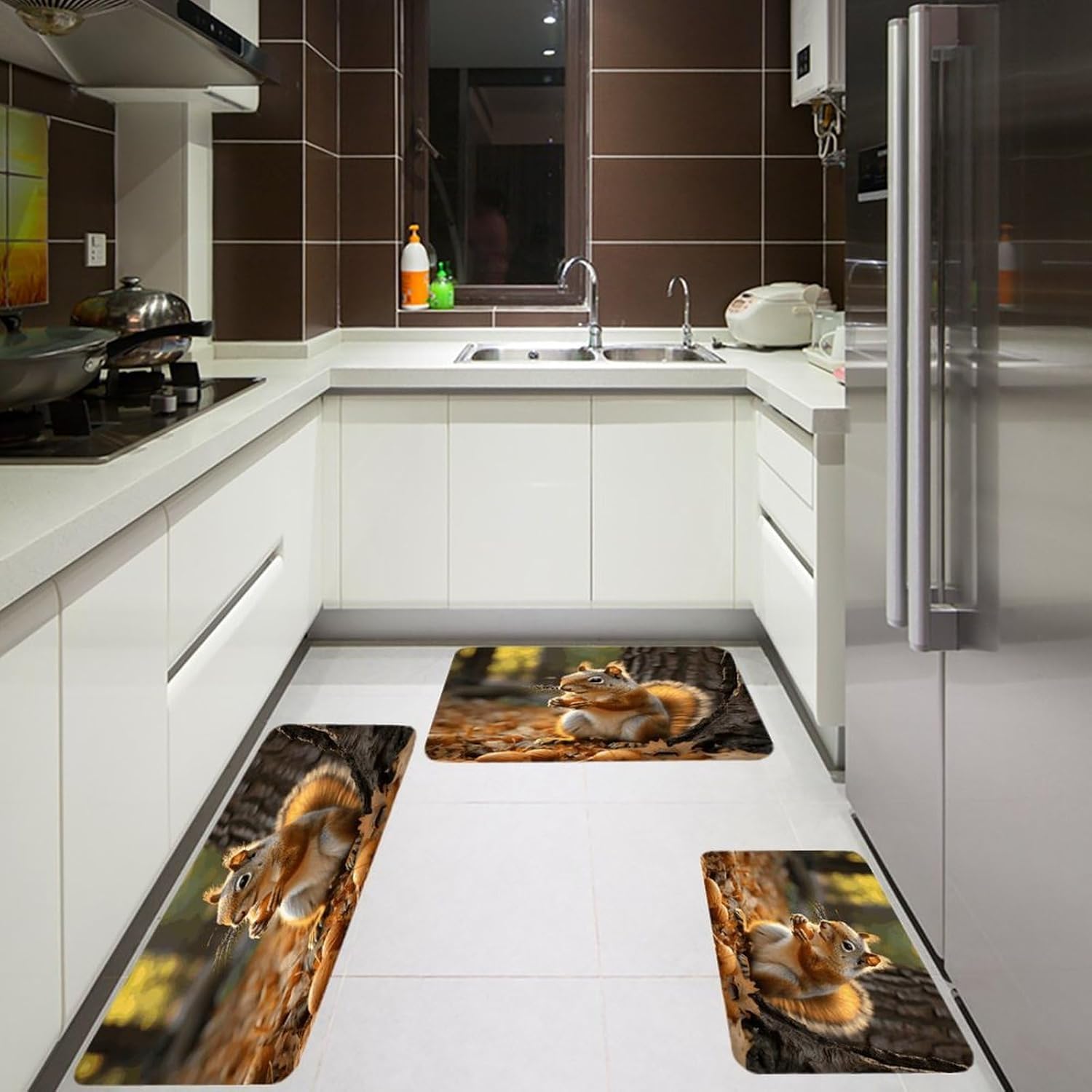 Introduce a new level of ease and visual harmony to your culinary space with this essential three-piece Cute Squirrel Eating Nuts kitchen mat set.Designed specifically for use areas,these cushioned kitchen rugs provide a welcome layer of support right where you need it most–in front of the sink,stove,or prep counter.the fabric offers a plush,dense texture underfoot,making standing tasks noticeably more comfortable.The set functions perfectly as versatile kitchen area rug solutions,fitting seamlessly into your existing layout.The core of these anti fatigue Cute Squirrel Eating Nuts kitchen rug sets lies in the selected velvet material.This fabric choice delivers both the sought-after softness and a practical thickness that gently cushions your feet,helping to alleviate the tiredness that comes with long cooking sessions.Beyond comfort,maintenance is refreshingly simple;they are washable kitchen mats designed to maintain their appearance through regular cleaning.Extend the utility and aesthetic charm beyond just the kitchen.The soft Cute Squirrel Eating Nuts kitchen runner rugs design and quality construction make them adaptable companions for other areas like the bathroom vanity or even outdoor patio setups where a comfortable floor mat is desired.Arrange the three pieces to create a cohesive runner effect or use them individually as targeted floor mats where support is needed.This set effectively combines practical comfort,effortless care with its washable nature,and an attractive upgrade to your floor space,making it a smart addition to any home.